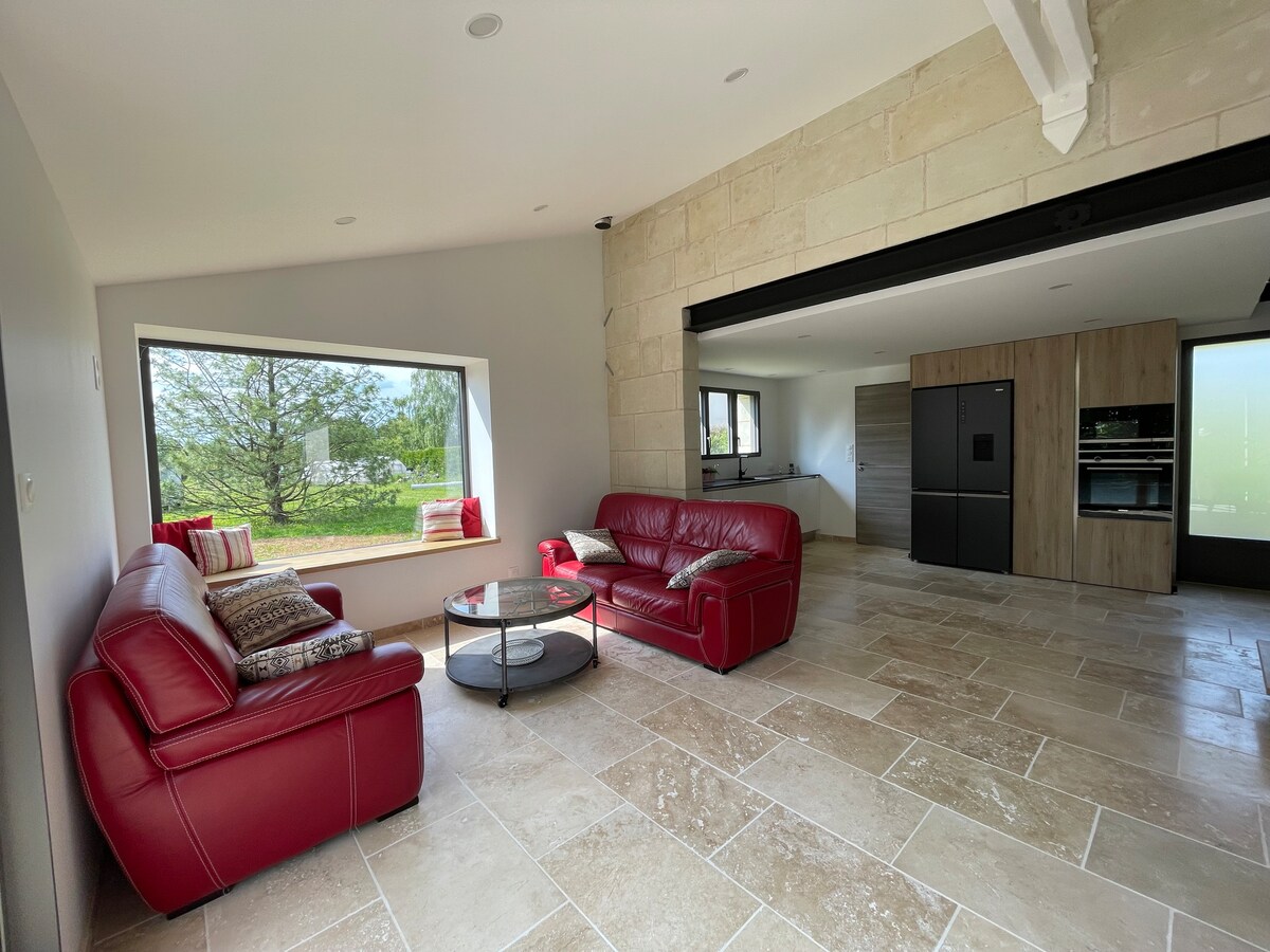 Nyt en eksepsjonell beliggenhet for å besøke det historiske sentrum av Frankrike, i Touraine på stedet for Pays De Racan og i nærheten av Loir-dalen, 45 minutter fra 24-timersløpet på Le Mans, fem minutter med bil fra Clarte Dieu og fem minutter fra Domaine de la Fougeraie. Huset har en kanadisk brønn, et geotermisk system som kjøler luften inne i huset. Skoddene må imidlertid holdes lukket når solen treffer buktvinduene.