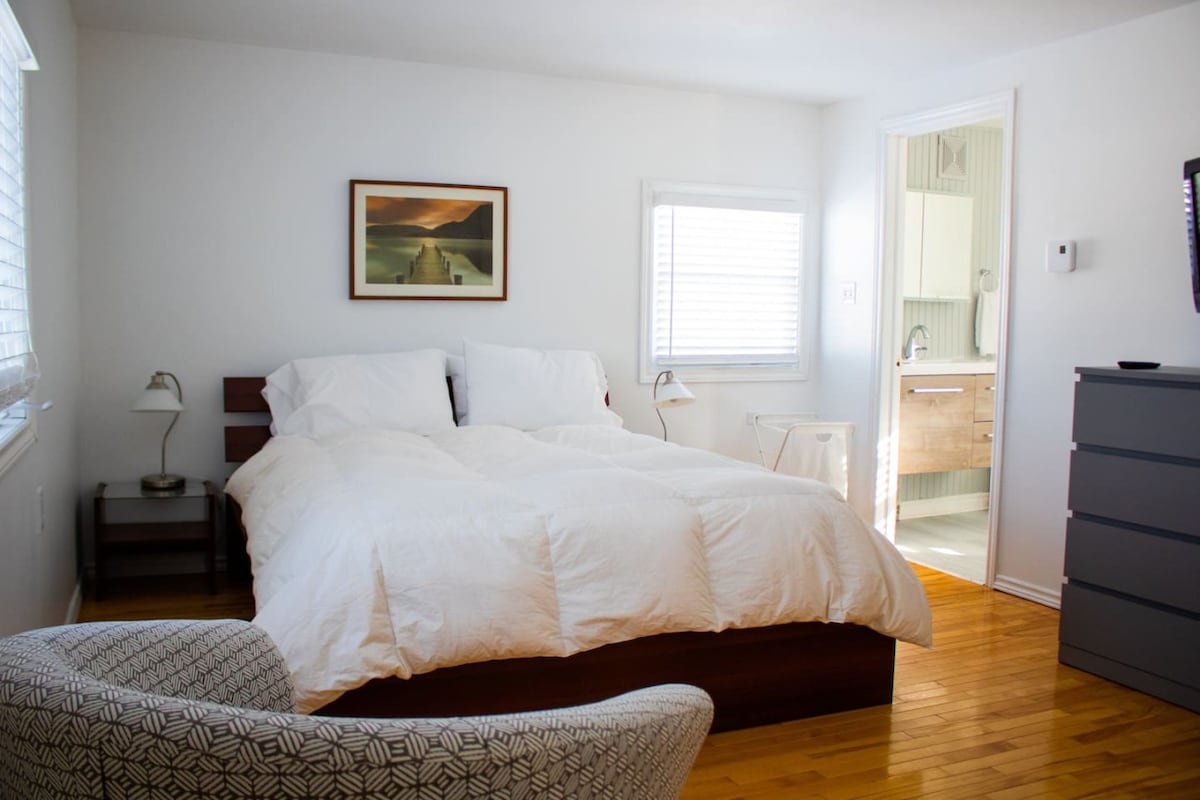 Velkommen til The Snug! Først kan du nyte den vakre kjøreturen til Northumberlandstredet. Deretter kan du slappe av i gjestehuset vårt over garasjen … et privat og koselig sted med havutsikt og tilgang … et flott sted å koble av, slappe av og puste inn den friske salte luften … og svømme! Vi ønsker deg velkommen og deler kunnskapen vår om området – 15 minutter til Murray Corner, 30 minutter til Shediac, PEI og Nova Scotia. Oppdag vingårder, bistroer, håndverkere, tur-/sykkelstier, unike butikker, golfbaner.