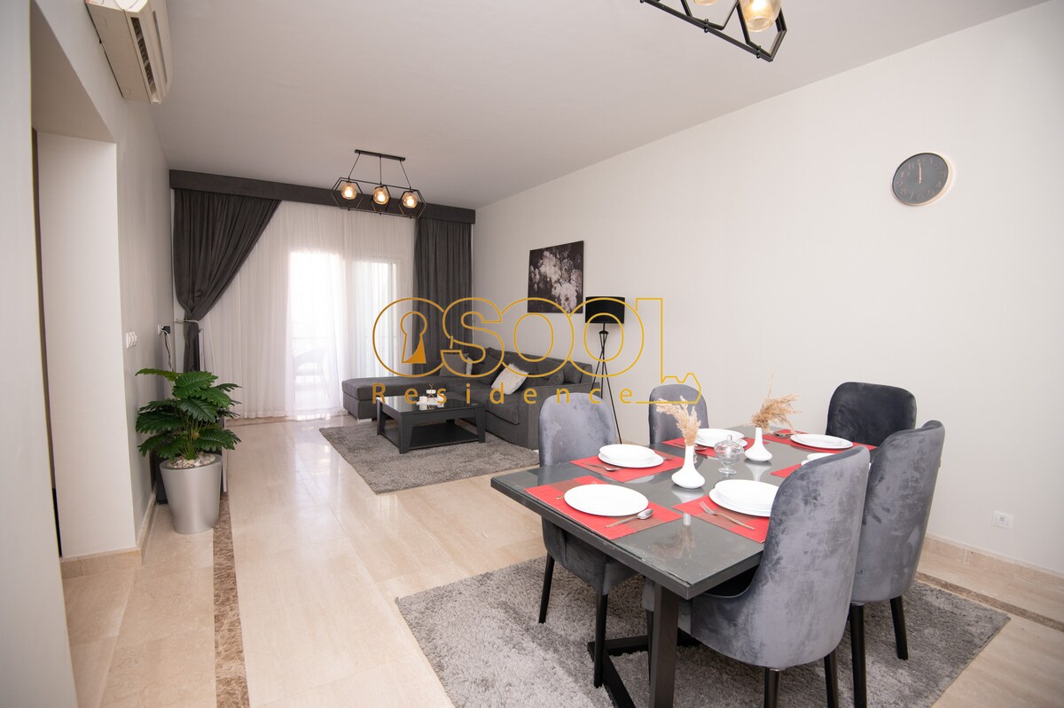 Velkommen til vår stilige leilighet med ett soverom: Send oss en melding for sesongbaserte og spesielle rabatter. ●Soverom (queen size + sovesofa) ●Stue (smart-TV + sofa) ●Spiseplass for tre ●Elegant bad. ●Fullt utstyrt tekjøkken. Beliggende i hjertet av byen, vil du være øyeblikk unna trendy kafeer, pulserende natteliv og de beste spisestedene. ●WaterWay 5A, ●Distrikt 5 Marakez ●Uavenues ●Kjøreturen ●Katameya ●Garden 8 ●El Malahy ●CFC ●Arabella og mange andre steder. Kontakt oss for flere anbefalinger.