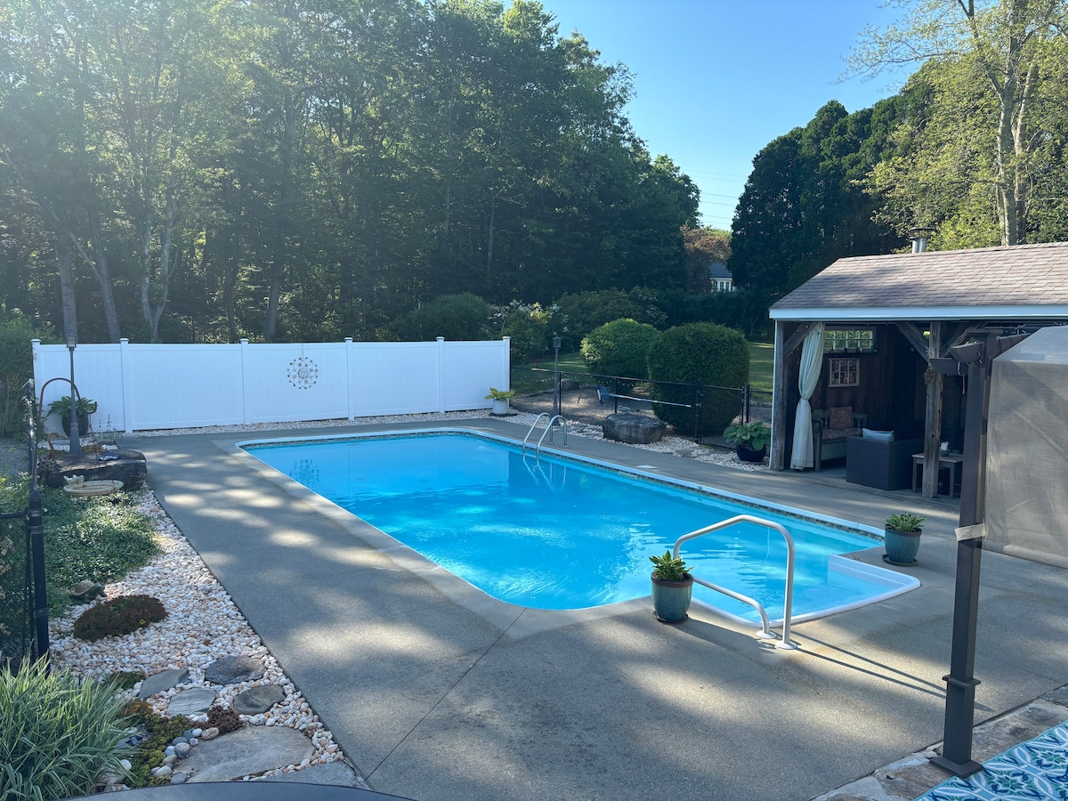 Dette perfekte fredelige og private hjemmet på 5 hektar er flott for å slappe av og slappe av enten det er å nyte dagen ved det utrolige bassenget/spaet eller stjernene som stirrer om natten. Langt fra støyen og forurensningen av bylivet. Du kan tilbringe en helg eller en uke borte fra arbeidslivet fordi du fortjener det. I nærheten av Foxwoods casino og Mohegan sun casino, super Walmart og andre butikker. Gi oss beskjed før du bestiller for mer enn fire personer, enten det er bare for dagen eller natten eller begge deler. Ingen høy musikk, ingen fester.