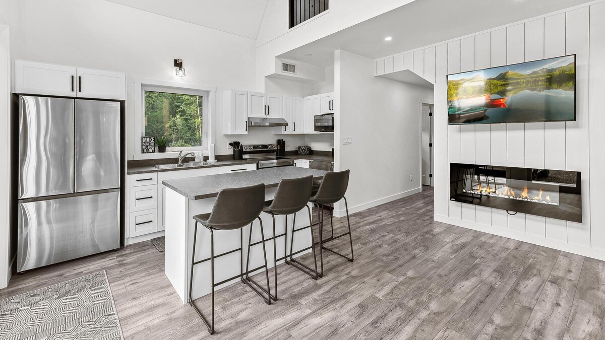 Enten du ser etter en ferie, en familiesammenkomst eller et komfortabelt hjem hjemmefra for hele gjengen, har dette huset alt. Sentral luft for å holde alle kjølige. Smart TV-er og blendingsgardiner i alle rommene. En naturgassgrill på terrassen med utemøbler og boblebad. En oppvarmet garasje med treningsstudio, kortbord, fotballbord og biljardbord. Et bålsted og trampoline i bakgården, pluss tilgang gjennom porten til en stor park med asfalterte gangstier.