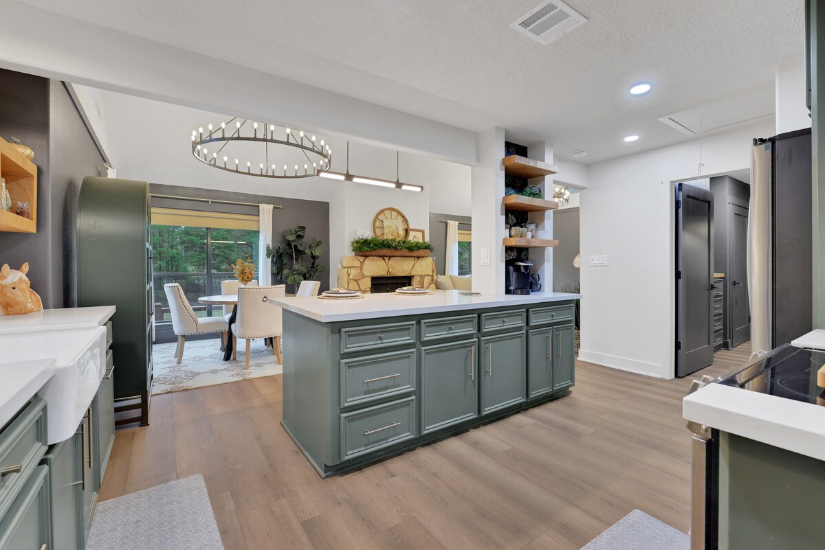 Rolig landlig beliggenhet kun tre engelske mil fra Downtown Huntsville, 4,5 engelske mil fra SHSU, én engelsk mil fra Walker County Fair. Hjemmet er et perfekt sted å slappe av etter en lang dag på jobben eller en dag med shopping på torget. Vi er omgitt av trær, og hjortene elsker å komme på besøk morgen og kveld. Gjesteområdet er satt opp som et hotell med et kjøleskap i full størrelse, mikrobølgeovn og kaffekanne. Stedet har egen inngang, og gjestene har muligheten til å komme og gå etter behov uten å forstyrre huseierne.