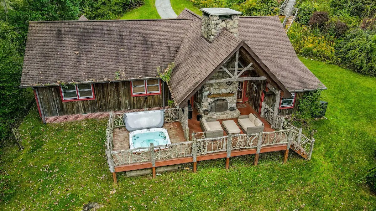 Hytte med peis ute, spa, gangavstand til Banner Elk.