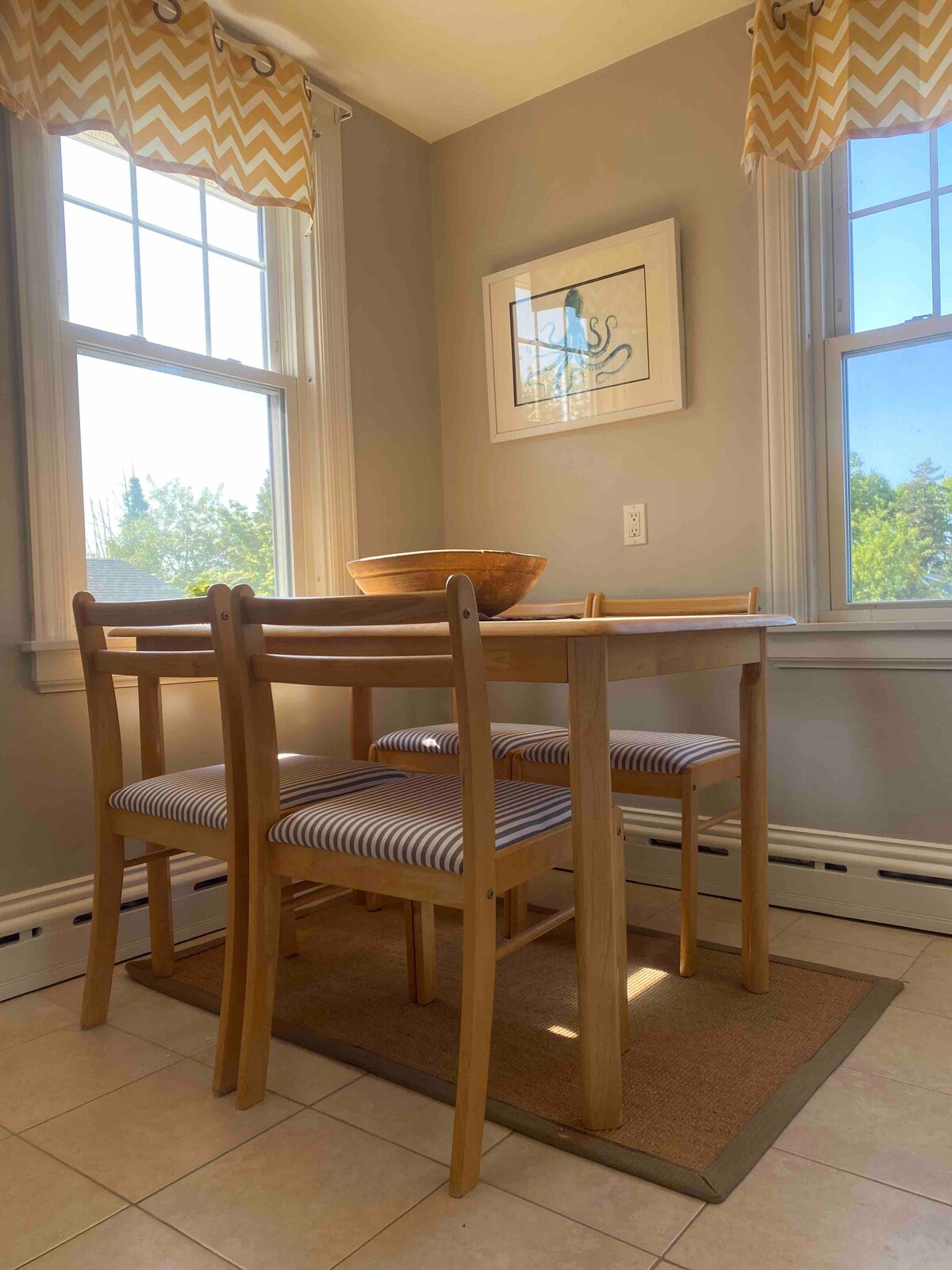 Bo på det renoverte Old Tiverton Four Corners Schoolhouse nr. 1, en historisk perle bygget i 1800. Eksteriøret speiler den opprinnelige skolehusfasaden, mens interiøret blander moderne bekvemmeligheter med historisk sjarm. Hjemmet har et gourmetkjøkken, en koselig stue med en vedfyrt peis, to soverom og et boblebad. Ligger innenfor gangavstand fra Tiverton Four Corners-landsbyen, som tilbyr unike butikker, restauranter og mer. Kjæledyr er ikke tillatt. Be om en gratis helgeplan!