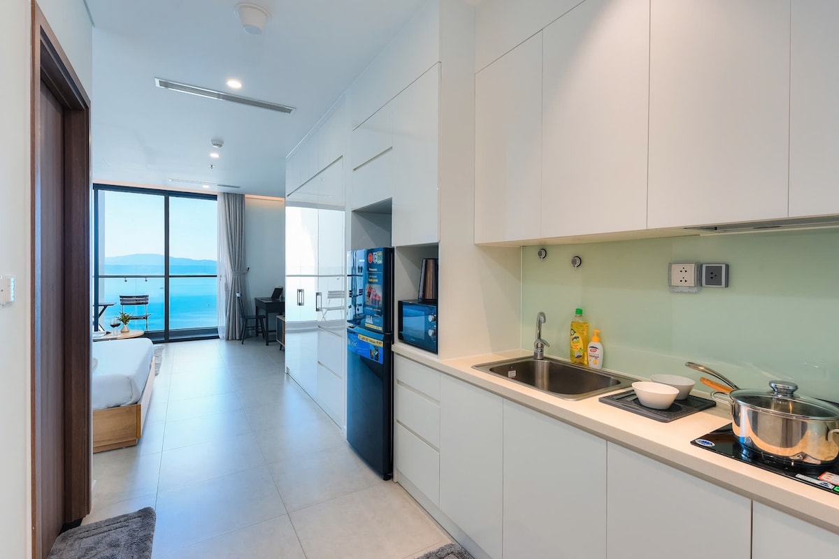 – Stedet ditt ligger stille i hjertet av det travle sentrum, tre minutters gange til det mest berømte 2/4-torget, den beste stranden, nattmarkedet, landemerkene, det gamle Ponagar-tempelet på de vakreste stedene i Tran Phu-gaten. – Stedet vårt er ikke bare et sted å sove. Det er et sted å bo og jobbe. Tilbered et hjemmelaget måltid på vårt fullt utstyrte kjøkken, som inkluderer alle nødvendigheter du trenger: en elektrisk komfyr, kjøleskap, TV, aircondition, stor seng, raskt trådløst nettverk, store vinduer, varm dusj, stort bord.