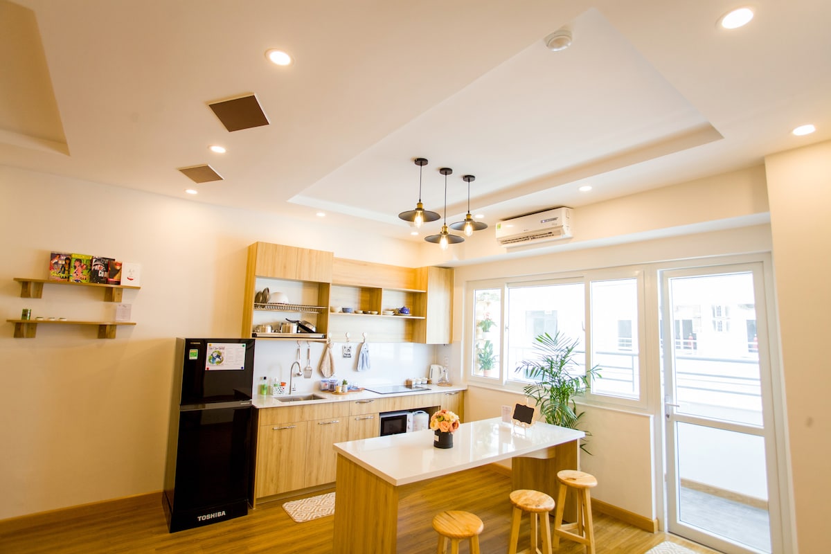 Mình Về Homestay er et helt nytt overnattingssted i hjertet av Nha Trang, bare 300 meter fra stranden. Huset er designet for grupper på opptil seks voksne, og det tilbyr alt du trenger for en komfortabel tur: et fullt utstyrt kjøkken, vaskemaskin og tørketrommel i huset og vanlig rengjøring. Alle tre soverommene har projektor, skrivebord og rikelig med naturlig lys. Hele hjemmet føles varmt og innbydende, og i 4. etasje er det et avslappende badekar, perfekt for å slappe av etter en dag i byen.