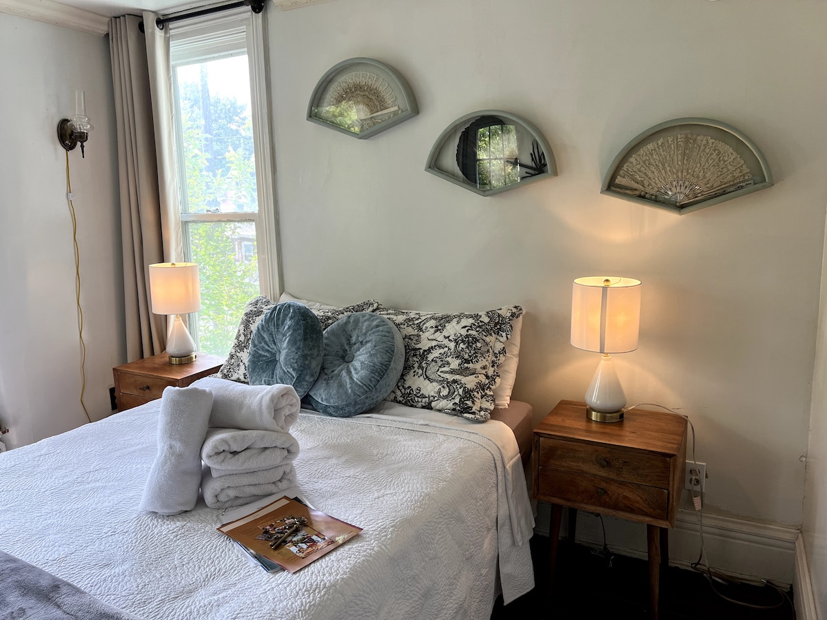 Gå til Niagara Falls State Park, fyrverkeri, belysningsshow, konferansesenter, Canada, restauranter, helikopter og kasino. Dette er det opprinnelige LILLE tjenerrommet på denne borgerkrigen som nå blir reddet og drevet som et museum BnB. (oppgrader hvis du er over 6 fot.) Bestill ankomsttid for din "korte innsjekkingseventyr" gjennom huset for å finne skjulte rom, bad, Falls historie og rommet ditt. Frokost i spisestuen fra $ 20. + enkelt tillegg. Les husreglene