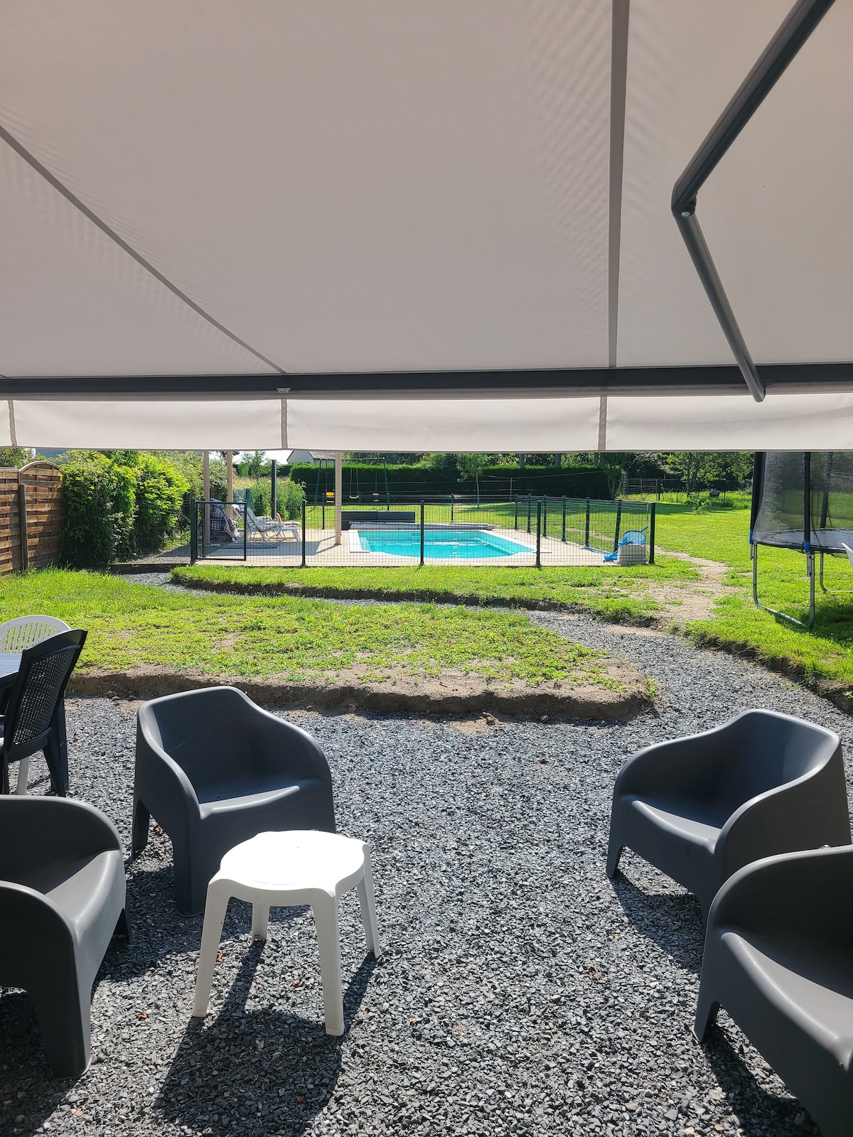Garantert frakobling! Dette fredelige stedet tilbyr et avslappende opphold for hele familien eller med venner. Liten koselig hytte renovert på eiendommen, med basseng, midt i landskapet. Butikker 3,5 km unna. dobbeltseng på mesaninen+ liten sammenleggbar sofa i første etasje (2 barn små gabari). Svakt nettverk. INGEN TRÅDLØST NETTVERK. Ingen TV. Overvåkningskamera med utsikt over husets inngangsdør. lading av el-bil (langsom kostnad) Sykkelutleie mulig: 5 €/sykkel/ dag 2 🐈