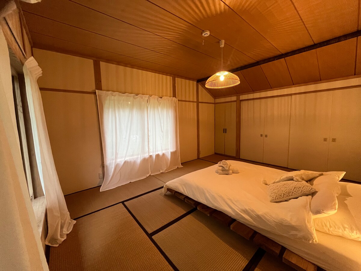 Hinoki-suiten er en privat hytte med loft, tatamirom, kjøkken, stort bord, Hinoki-bad og terrasse. Loftet (lavt tak) har plass til to i en queensize-seng pluss én på en futon. Tatamirrommet har plass til tre personer på futoner. Det eksklusive Hinoki-badehuset ligger ute, noen skritt unna på terrassen. Daglige private 1-timers badstueøkter med badstuekledning er inkludert. Nyt gratis bagasjeoppbevaring før innsjekking/etter utsjekking og gratis bruk av vaskemaskin/tørketrommel. Alle gjester kan nyte den lille zen-hagen vår.