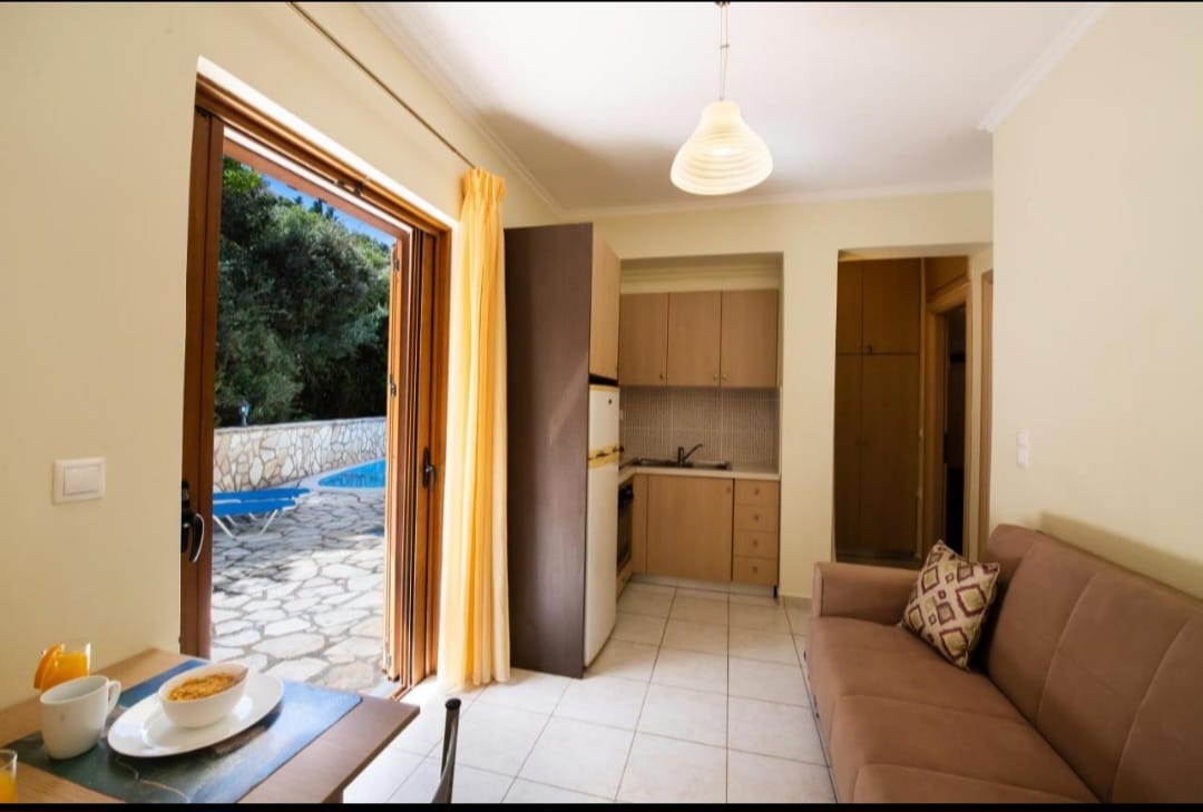 Casa Bonita ligger i en bakke, like utenfor landsbyen med panoramautsikt over Det joniske hav og noen av øyene som Meganisi, Kalamos og Kastos, og er det perfekte stedet for en familie på fire eller to par. Leiligheten består av et åpent kjøkken fullt utstyrt og stue med en komfortabel sofa og en smart-TV, ett bad med dusj, et soverom med dobbeltseng (1,60 x 200) og det andre soverommet med to enkeltsenger. Myggnett,smart-TV, klimaanlegg og takvifter i alle rom. Gratis parkering