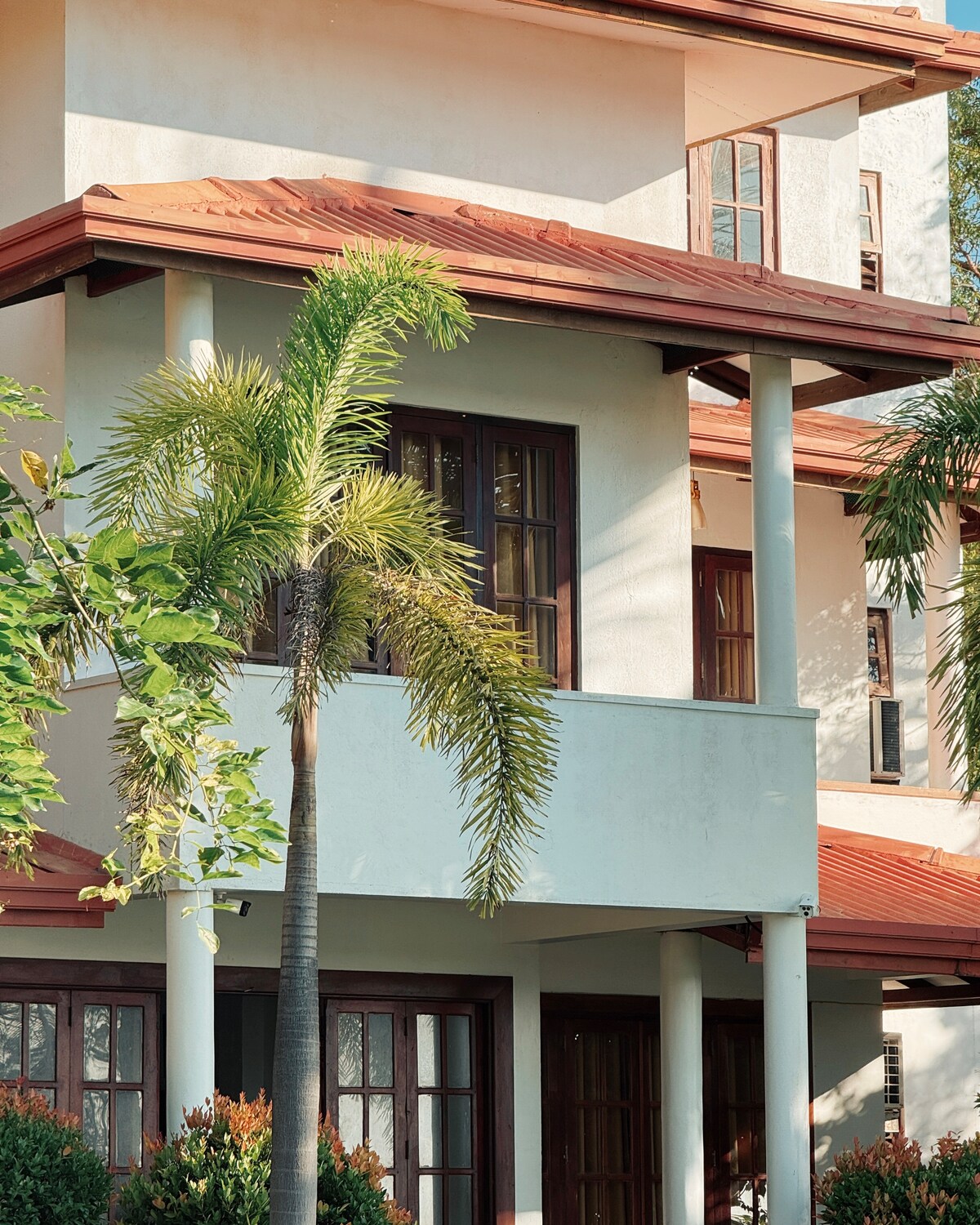 Vi har to dobbeltrom med to tilhørende bad, ett kjøkken, ett stueområde. Og vær oppmerksom på at svømmebassenget ikke er på stedet. Det var 55 meter langt unna eiendommen, og det er foran stranden. Begge rommene AC-er er inkludert i prisen, men for bruk av klimaanlegget i gangen må du betale tilleggsgebyr på 4000LKR per dag. Tusen takk!