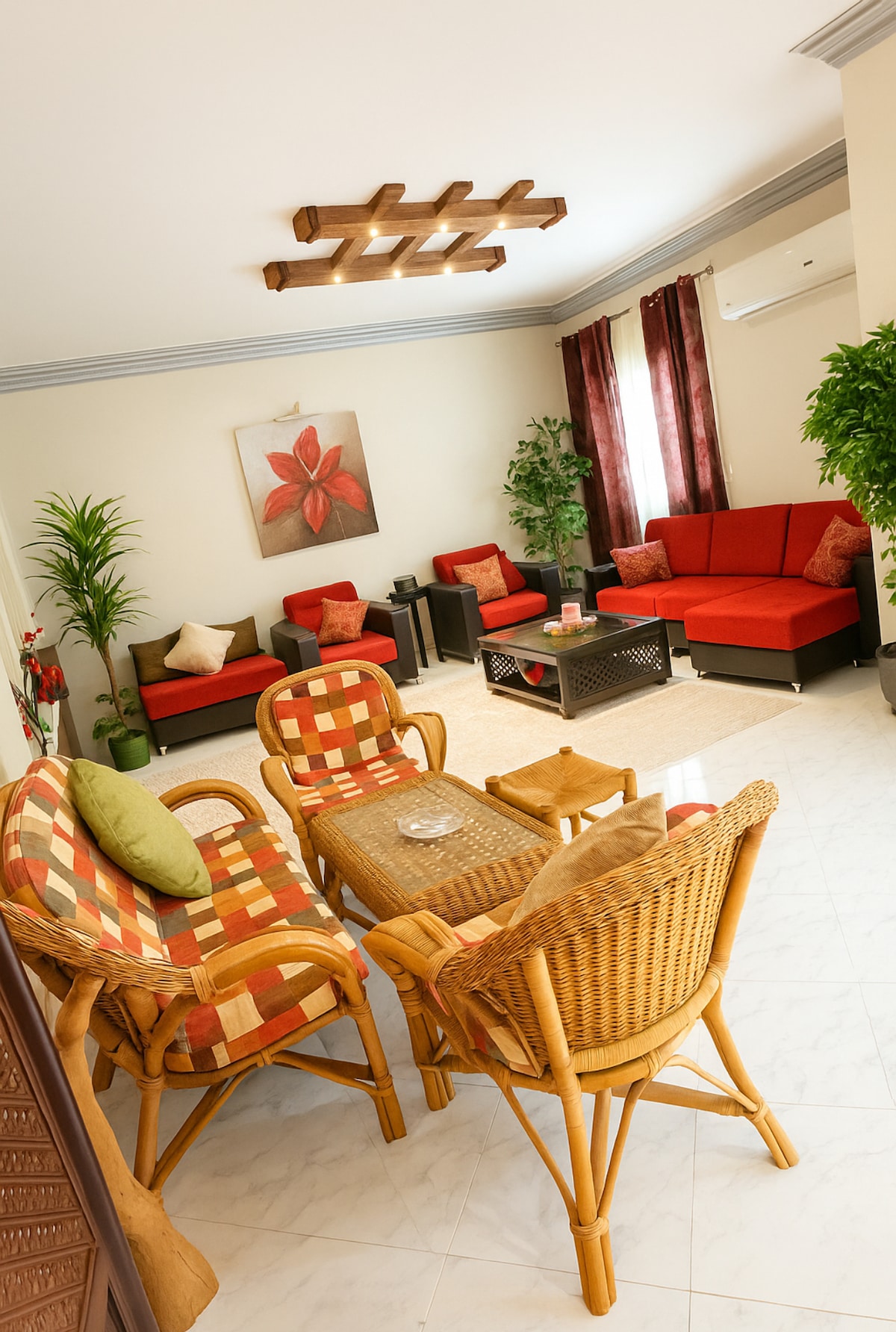 En HEL LEILIGHET med en bakgård som ligger i et vakkert og grønt område i et fredelig integrert samfunn som oppfyller alle beboernes behov. Rommene er nyinnredet, har aircondition, smart-TV og alle fasiliteter du trenger, superRENE og STILLE. Leiligheten ligger 25 minutter fra Kairo internasjonale flyplass. Kaffebarer, restauranter, supermarkeder og apotek ligger alle i nærheten. Hotellstandard kvalitet med hjemmelig komfort til en RIMELIG PRIS.