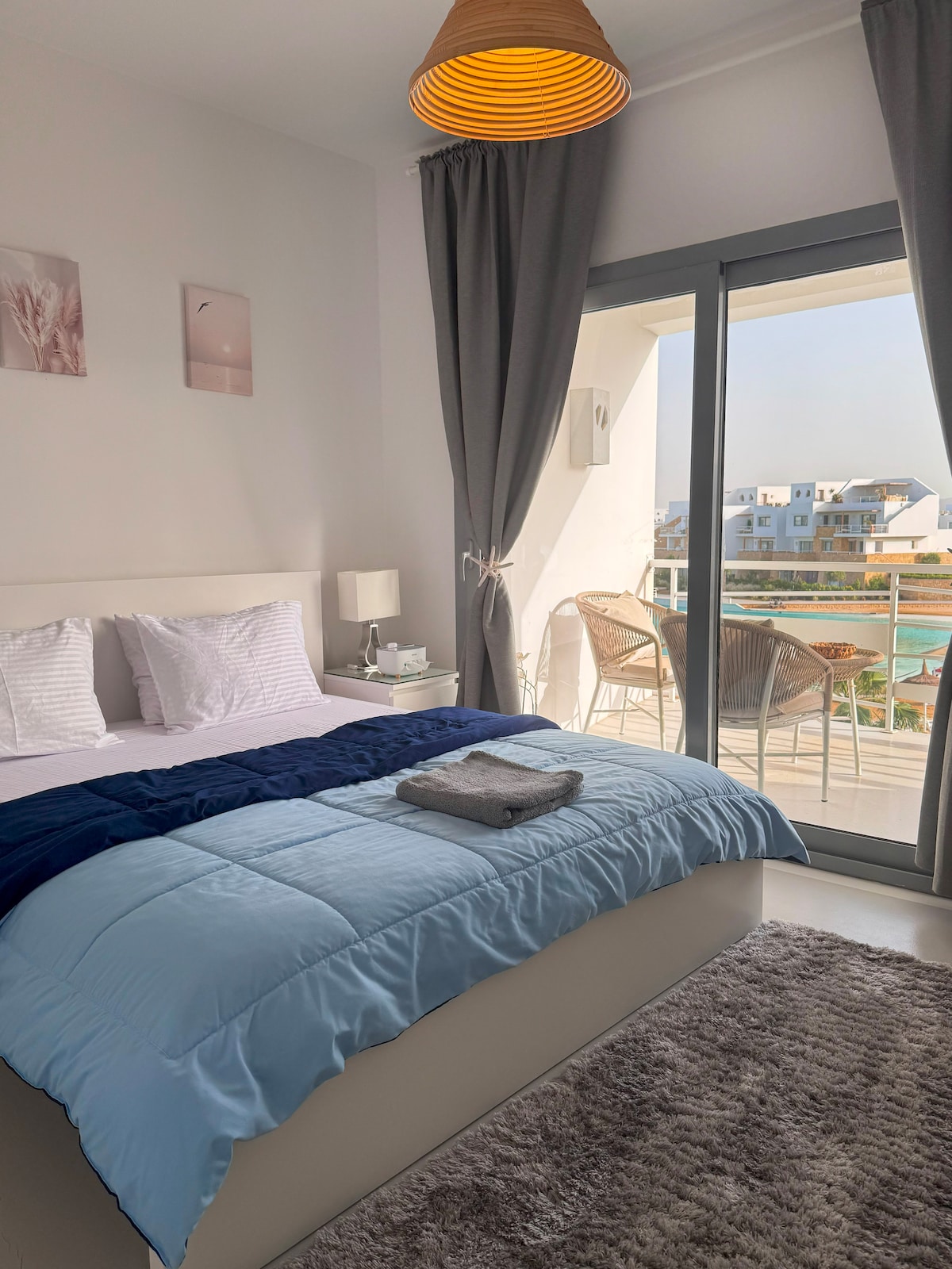 En vakker, moderne leilighet i et nybygd kompleks som ligger på El Gouna Water-siden, med utsikt over den praktfulle lagunen og kabelparken. Denne hotelllignende leiligheten er laget for din komfort med alle nødvendige fasiliteter: Wi - Fi, internettilgang, flatskjerm - TV med kabel - TV - kanaler. Den private hotelllignende leiligheten er et godt valg for en ideell ferie i El Gouna.
