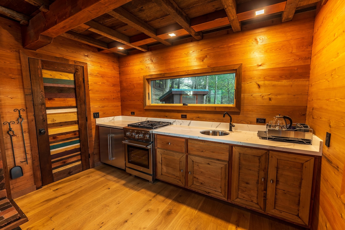 Denne private suiten er et stykke himmel i skogsområder! Tilgang via en hagetrapp, den har en privat inngang, dedikert gateparkering, en privat terrasse, luksuriøst stort bad med dusj for to, stort boblebad for to, gulvvarme, A/C, minikjøleskap, brødrister og mikrobølgeovn! Soverommet har en queen size-seng, bord for to, smart-TV med stor skjerm og sterkt fiberoptisk trådløst nettverk. Plassert i et vakkert nabolag med fantastiske turer rett utenfor døren.