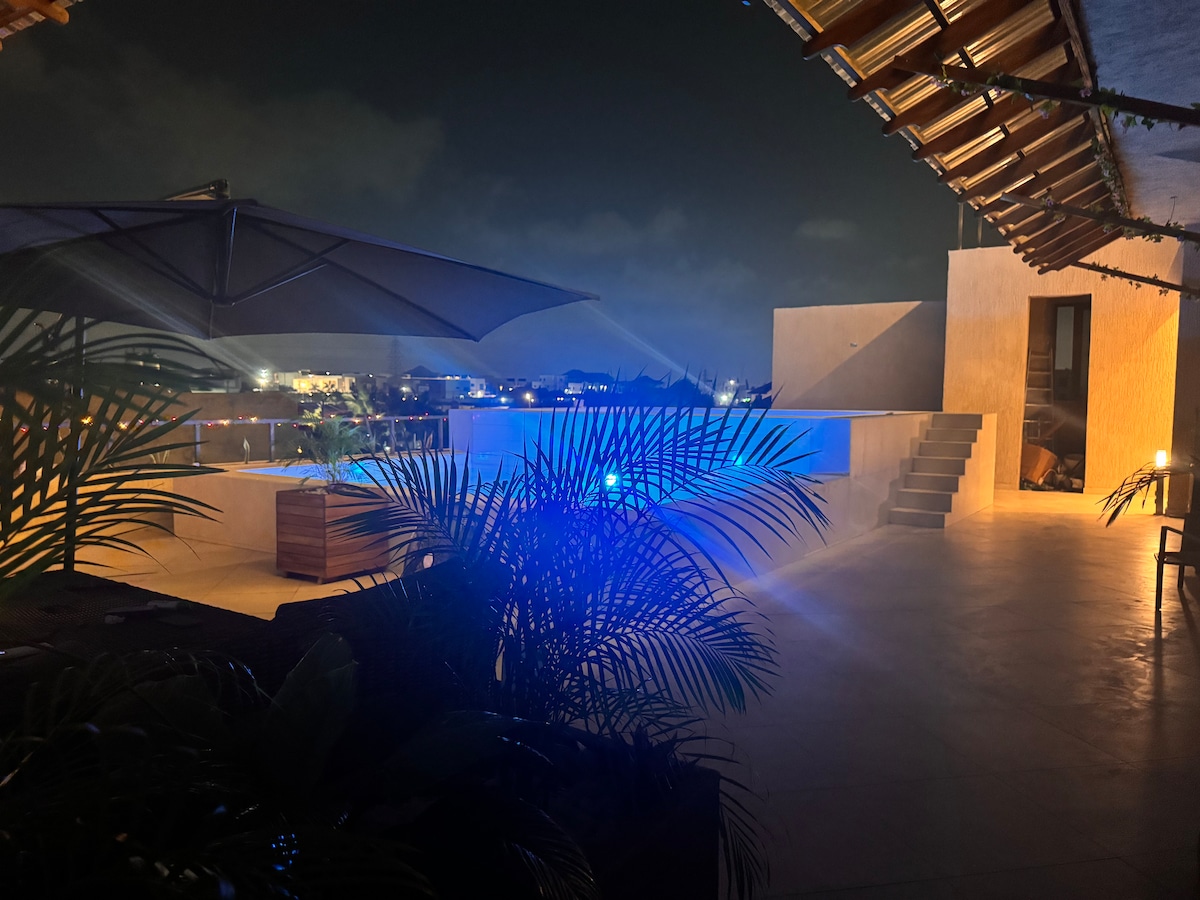 En varm velkomst til denne unike skumle villaen som inneholder 4 leiligheter i Temas nye og trygge fellesskap 25! Lei enten ensuite-rom eller hele leiligheter møblert med et snev av både skandinavisk og afrikansk design. Enten du blir i dager eller måneder, vil du finne et frodig sted hvor du kan slappe av eller jobbe. Alle gjestene har tilgang til utendørsbassenget, hageområdet, wi-fi og adiscount-flyplassen. Nyt en kjølig drink ved bassenget eller en varm pizza fra hageovnen. Huset har mange unike steder!