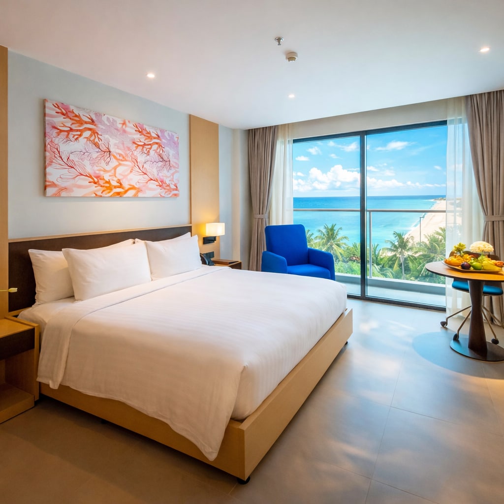 Rom med strandutsikt på Cam Ranh nær flyplassen