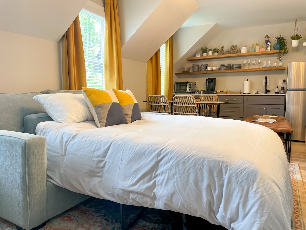 Nyt et koselig, men moderne, sentralt beliggende privat gjestehus! Innen en kort spasertur til mange barer, shopping, restauranter, dagligvarebutikker og kaffebarer! Og bare ti minutter med Uber til sentrum av Nashville! Dette nye gjestehuset har moderne fasiliteter, komfortable senger og tilbyr rikelig med plass til å slappe av. Den ligger på toppen av en garasje på eiendommen vår og ligger i en rolig gate i et travelt nabolag! Downtown/Bridgestone/Stadium – ca. 3 miles Restauranter/butikker – mange alternativer innenfor to kvartaler til én mile.