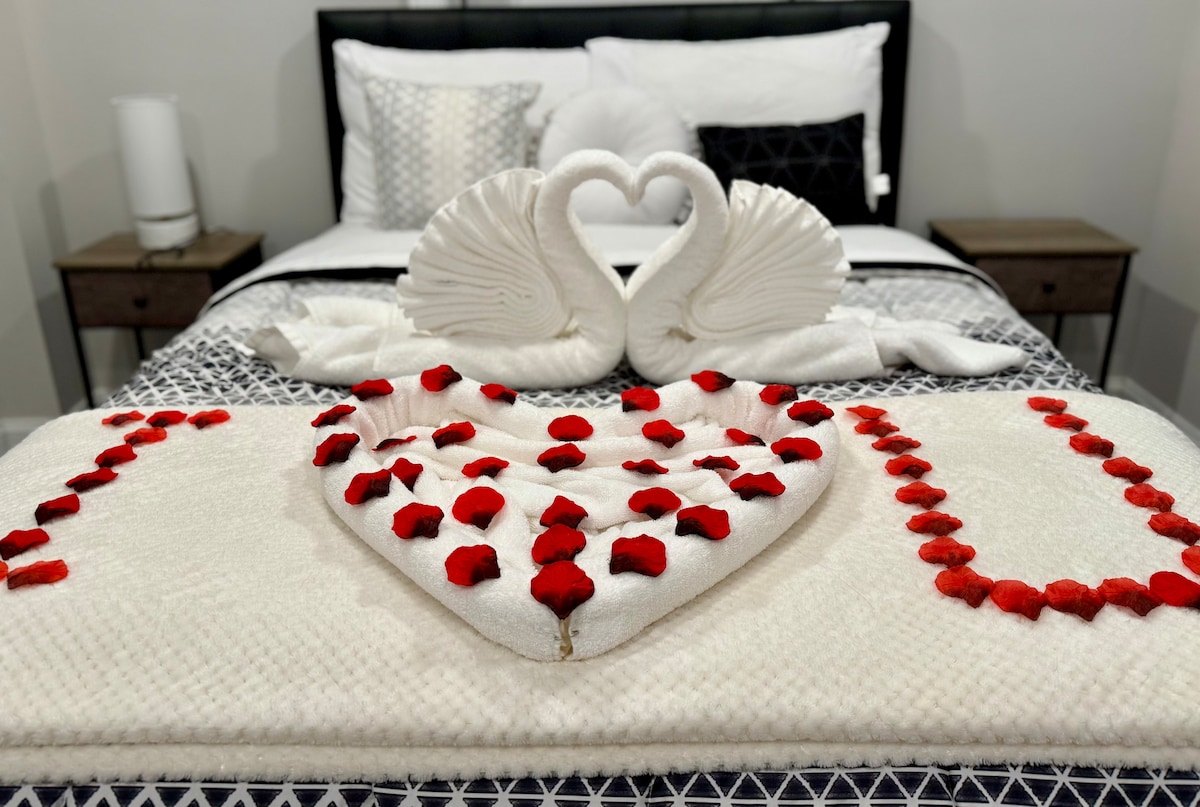 This enchanting Airbnb is a one-of-a-kind couples’ retreat created for two connected souls. Guests often say it’s more than a stay—it’s an experience. Enjoy a fully equipped kitchen for intimate meals, a spacious living room with plush seating, and a mesmerizing aquarium that invites you to unplug and simply be together. Upstairs, a romantic bedroom sets the mood. Every detail is thoughtfully designed to create meaningful moments and memories you’ll carry long after you leave.