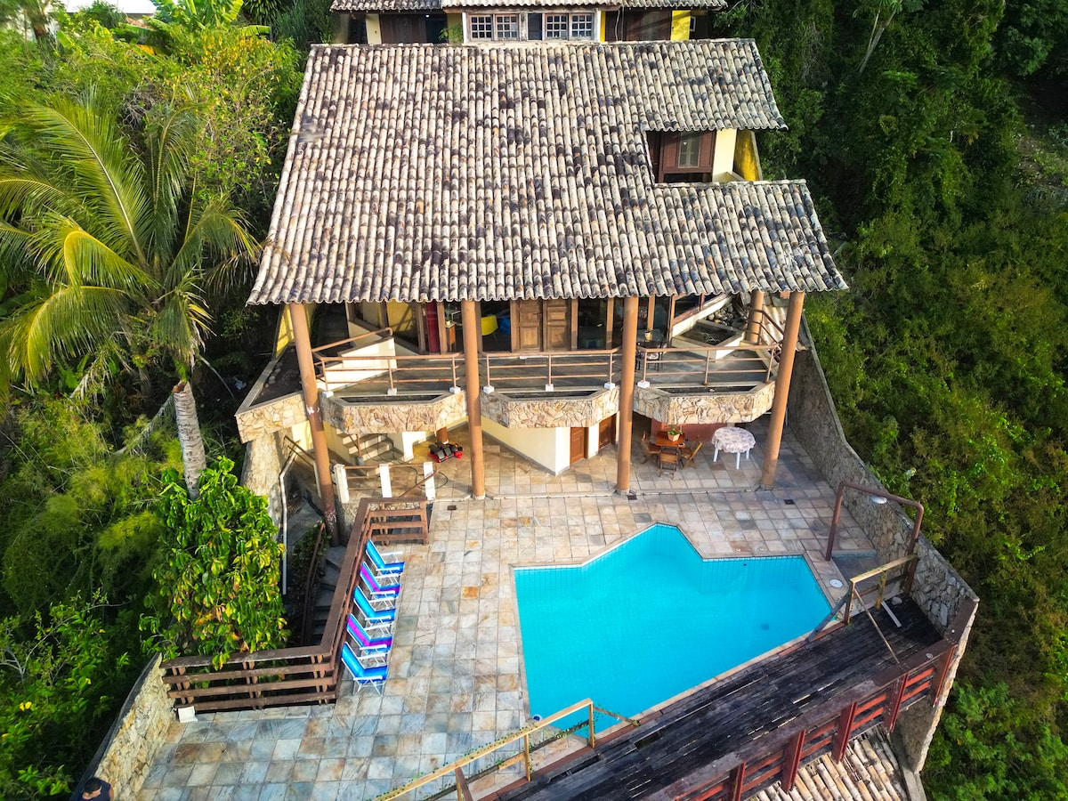 Fullt dekorert og koselig loft. Komplett: Suite med aircondition, skrivebord og elektrisk dusj. Kjøkken utstyrt med kjøkkenutstyr, kjøleskap, mikrobølgeovn, elektrisk ovn, gryter, kokeplate. Spisestue og stue. I det utendørsområdet er det et basseng, dusj, toalett, grillplass, solsenger, lysthus. Inngangen til loftsleiligheten går gjennom husets utendørsområde. 10 minutter fra de vakreste og mest populære strendene i Região Oceânica. Busser til alle steder, inkludert strendene.