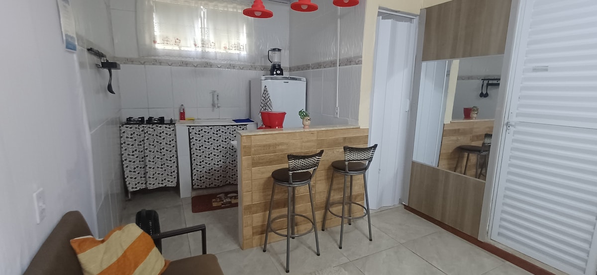 Det er et hus med ett soverom, det har en ekstra sovesofa i stuen, ett bad og kjøkken utstyrt med kjøleskap, komfyr, mikrobølgeovn og en kaffemaskin. Huset ligger praktisk til i en leilighet, i sentrum av Niterói, 10 minutter unna båtstasjonen til Rio, og i gangavstand til kjøpesentre, gatebutikker, restauranter, supermarkeder, sykehus og universiteter. det har veldig god internettilgang.