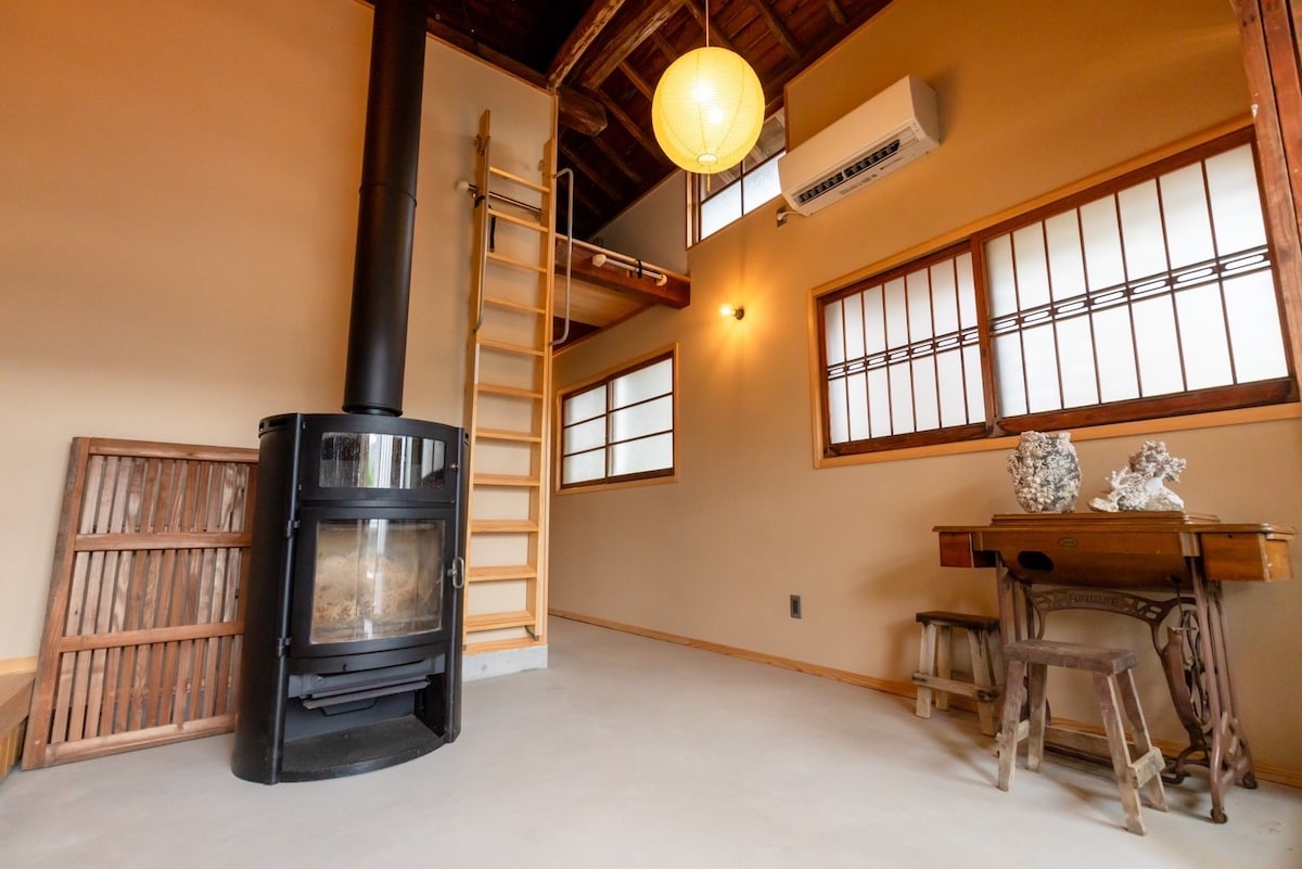 Det er en liten elv og et fint gammelt hus i japansk stil ved siden av huset. Grillverktøyet er klargjort. (Ta med et tenningsmiddel og trekull) det er komfortabelt om sommeren siden temperaturen er noen grader lavere enn i byen. Fra og med 2024 har mobiltelefonene blitt mye enklere å koble til. (ingen trådløst nettverk) Klimaanlegget ble installert i 2022, men det er bare i første etasje. Nyt den naturlige luften. Det er en vifte. Ved er ikke tilgjengelig fra mai, da det blir varmere.