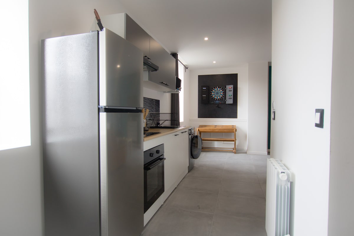 Opplev den ultimate komforten i vår 80 m2 leilighet, som ligger mellom Louvre Lens og Lens stadion. Nyt et boblebad for to personer med 95 jetstråler, en 165 cm 4K OLED-TV. Utstyrt kjøkken. Badet har en italiensk dusj, hengende toalett, et LED anti-dugg speil og en håndkletørker. Soverommet har en stor seng på 180 x 200 cm, et opphengt nett på 10 m2 med et lerret på 260 cm, en sofa, et sofabord, en Nespresso-maskin og en UHD 4K HDR-projektor.