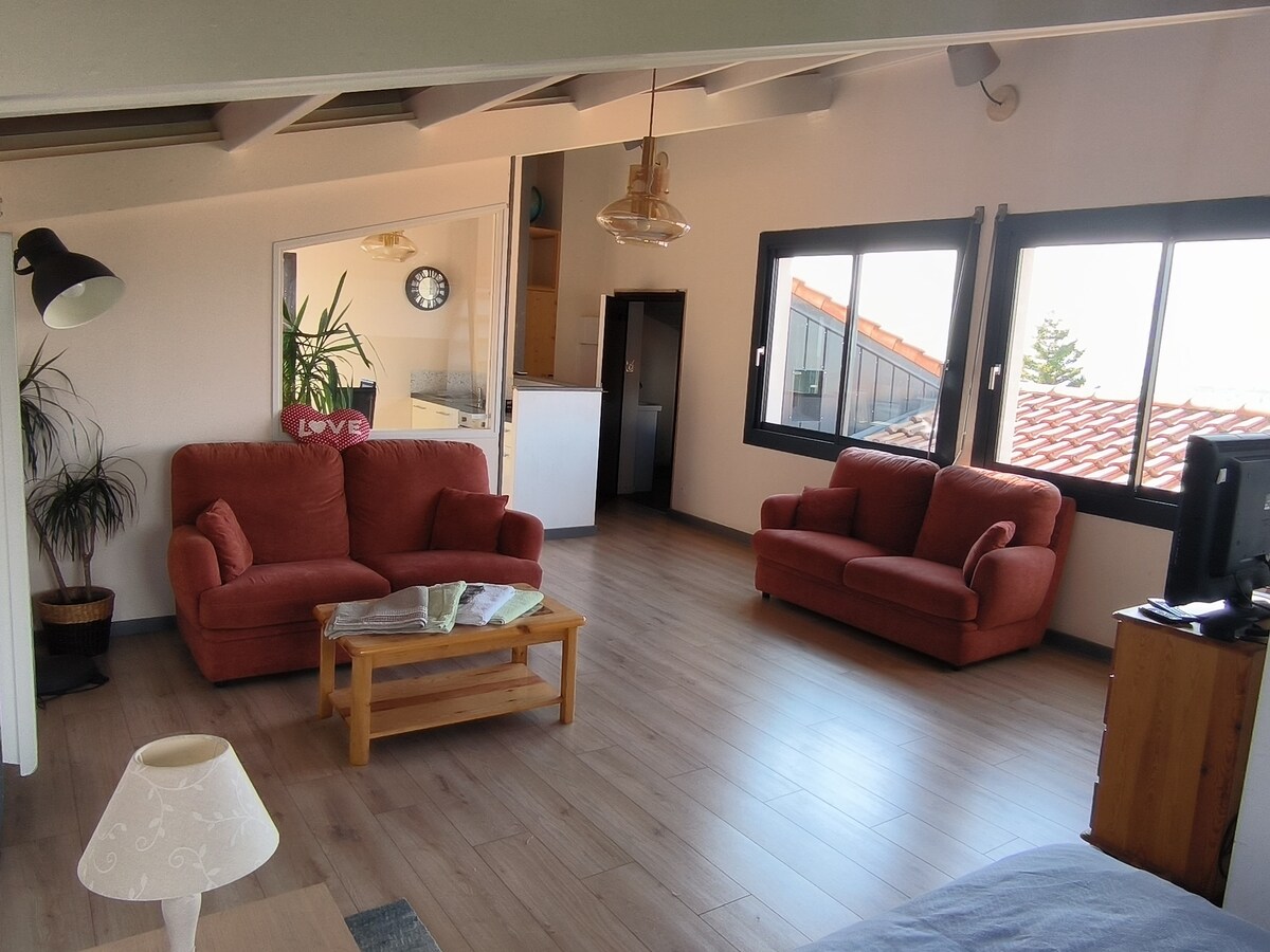 Luksusleilighet med klimaanlegg på 50 m2 møblert med SPA / Balneo / Videoprosjektør med motorisert skjerm 3 m x 2 m. helt privatisert for MAKS 2 personer, hvor du finner alt du trenger for å glemme hverdagen og komme deg bort. Mulighet for å legge til en seng med en eller to ekstra plasser på forespørsel, gi 72 timer i forveien (ekstra kostnad)