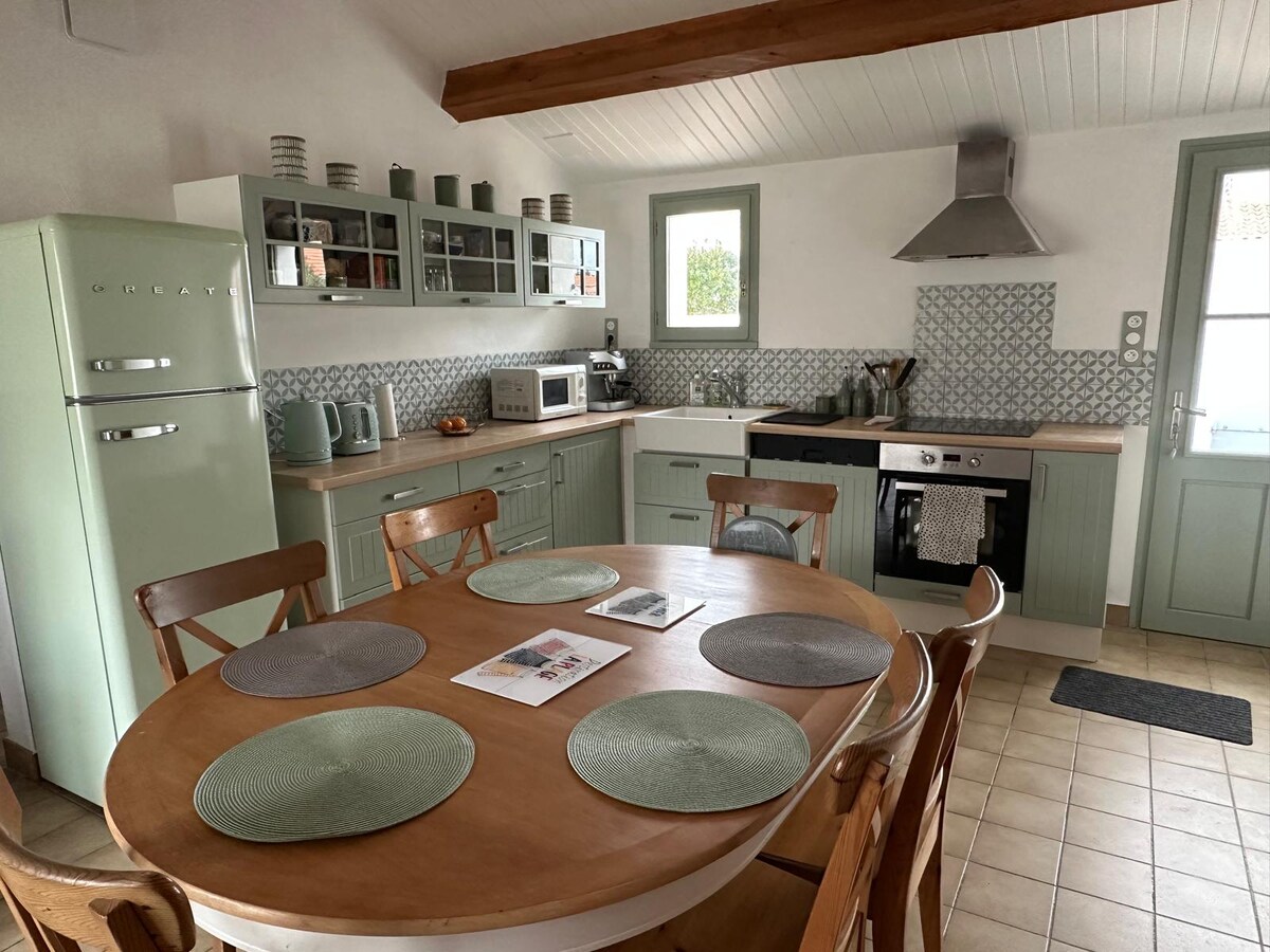 Sjarmerende lite hus som er typisk for øya Noirmoutier, som ligger i den vakre lille landsbyen Le Vieil, nordøst på øya. Huset vårt på 50kvm, fullstendig renovert tidlig i 2025, ligger 50 meter fra Le Petit Vieux-stranden og fem minutters gange fra sentrum hvor vi finner et spar (brøddepot, bar, restauranter, tobakksbutikk. Le Vieil er et fredelig sted, du kan sykle eller til fots, fra bakgate til bakgate som tar deg nesten alle til en strand.