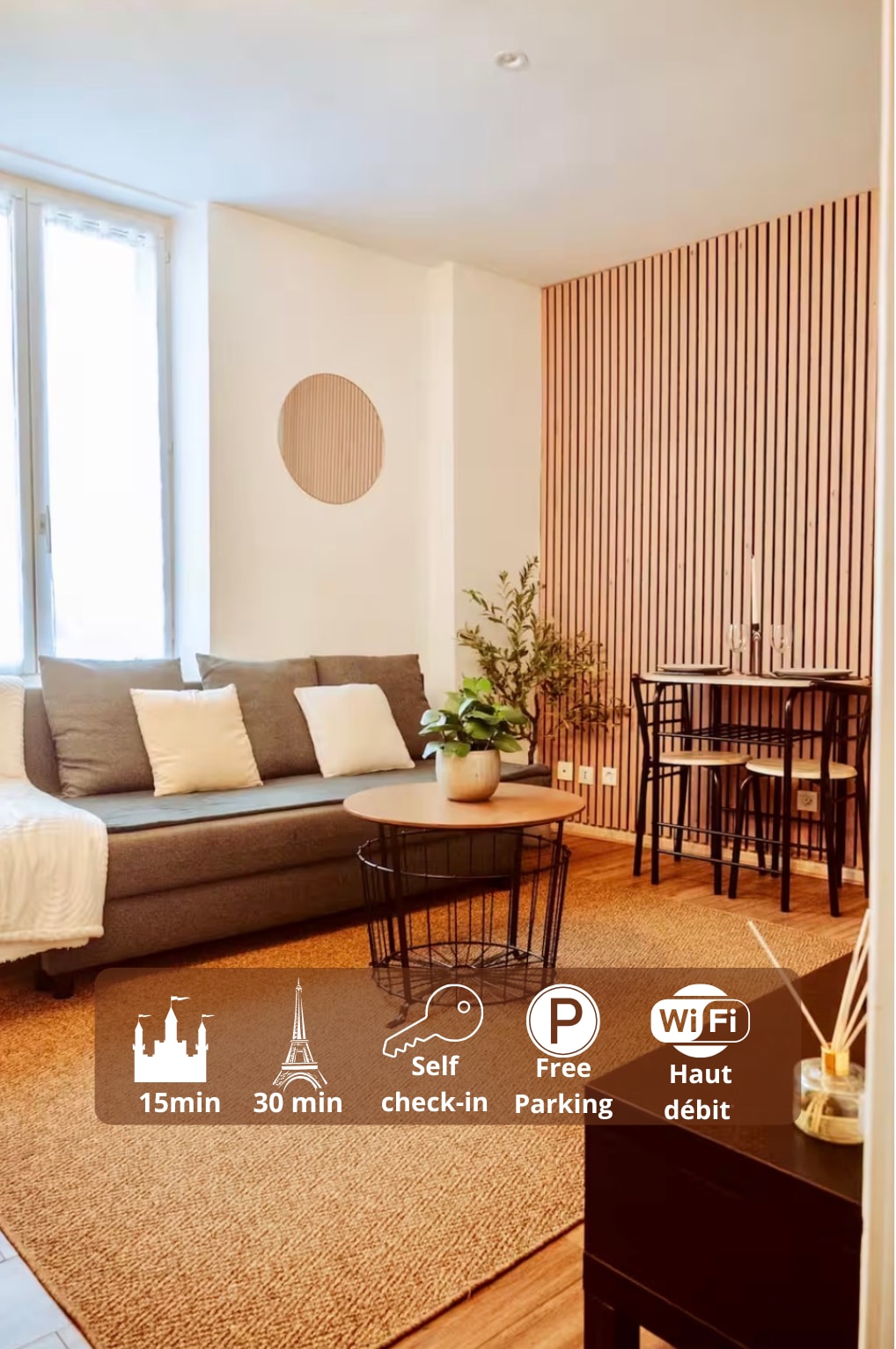 Plass til opptil fem personer. I nærheten av restauranter, butikker og offentlig transport (30 minutter til Paris, 15 minutter til Disney). Privat parkering, nøkkelboks for innsjekking uten vert. Rikelig med lagringsplass, uteterrasse for røyking. Sengetøy og håndklær er inkludert. Samlinger og fester er ikke tillatt.