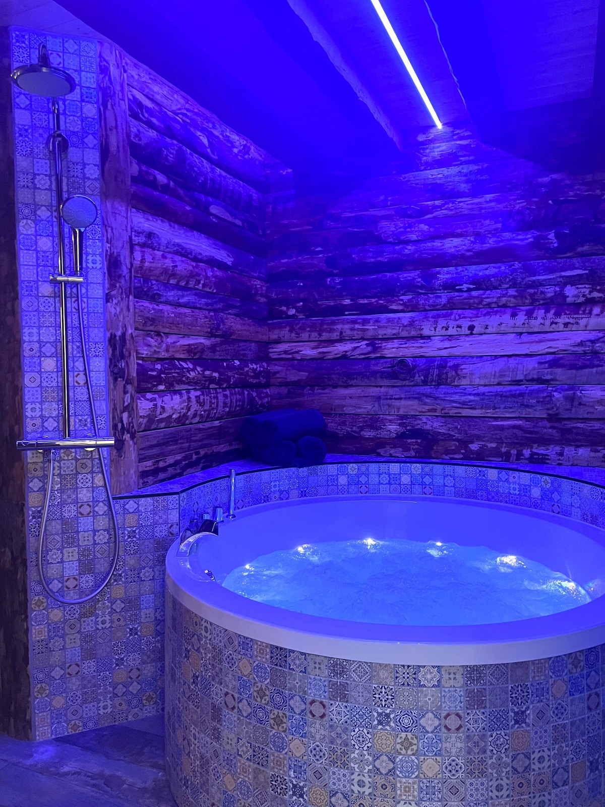 Hva om ditt neste opphold så slik ut? 🛁 Gå inn i boblebadet med massasjedysere, behagelig belysning og en film som spilles av i bakgrunnen. 🛏️ Strekk deg ut i den runde sengen på 86 tommer, i en koselig og innbydende atmosfære 🎬 Nyt en koselig kveld med videoprojektoren 💫 La deg rive med av terrakottaatmosfæren, lysspillet og de vakre rommene 🌹 Tilpass oppholdet ditt for en romantisk ferie 🌿 Eller bare … få mest mulig ut av øyeblikket