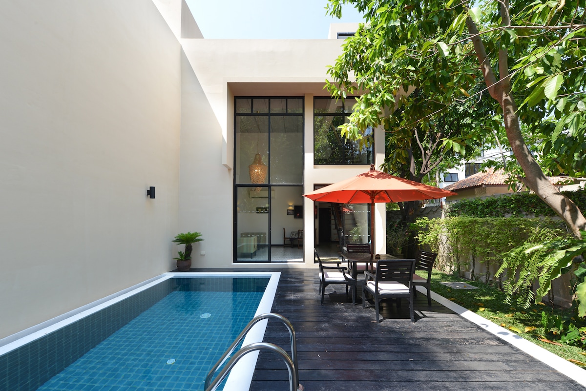 Nyrenovert i juni 2019, beliggende i sentrum av Hua Hin-stranden, 2 senger privat bassengvilla designet i en orientalsk antikk stil med kinesiske møbler, hage og basseng. 24 timers personale på stedet. Frokost leveres til rommet ditt. Tre minutters spasertur til stranden, kafeen, restaurantene og supermarkedet.