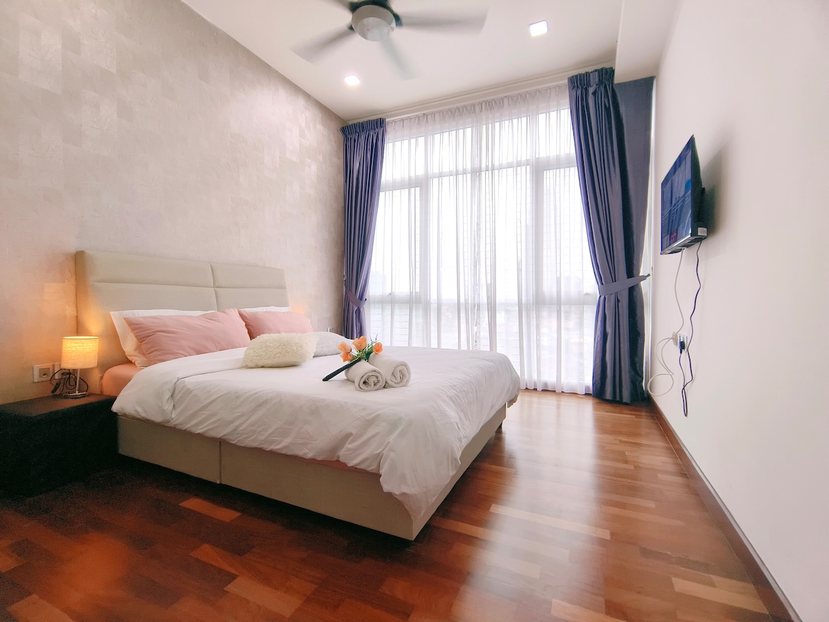 Den perfekte beliggenheten for å utforske Johor Bahru by. Profesjonell vert. Tilgjengelig for kontakt 24 timer i døgnet. Flott opphold garantert. 7 minutter SG-JB sjekkpunkt 6 min fra JB busstasjon Fem minutter til Danga Bay (for å slappe av i nærheten av stranden) 4 min til Johor dyrepark 2 minutter JB Town Square Fasiliteter inkludert treningsstudio sauna basseng bordtennis lekeplass for barn osv.