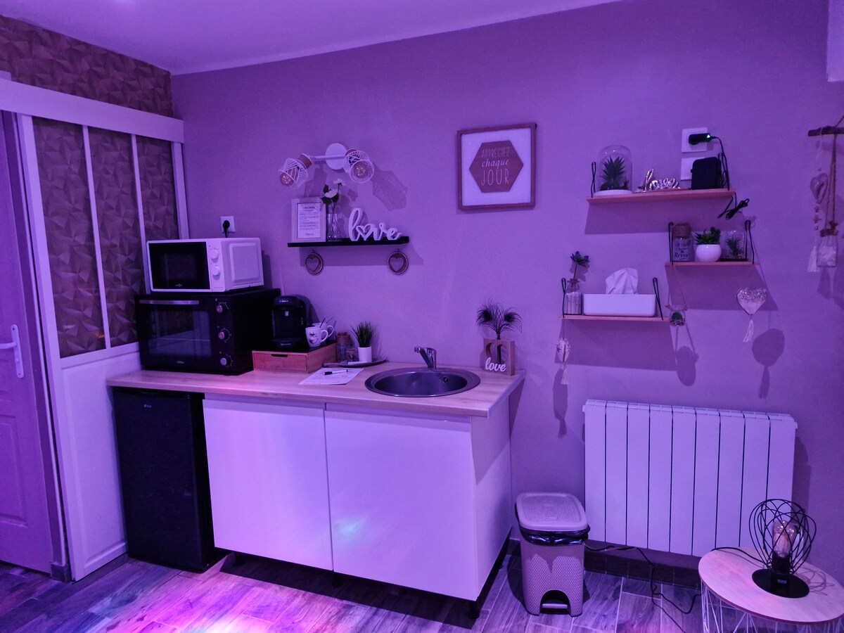 Plongez dans un moment de détente unique ! 🌿 Studio privatisé de 50 m² avec grand jacuzzi 5 places dont 2 places allongés, lit confortable de 160 cm, double douche à l’italienne, coin salon cosy et terrasse privatives et cendrier et salon de jardin le tout clôturer. Équipé de TV connectée, sonorisation et Wi-Fi, parfait pour une escapade romantique ou un week-end ressourçant. Parking privé et accès sécurisé par portail inclus. Réservez vite et offrez-vous cette parenthèse bien-être ! ✨