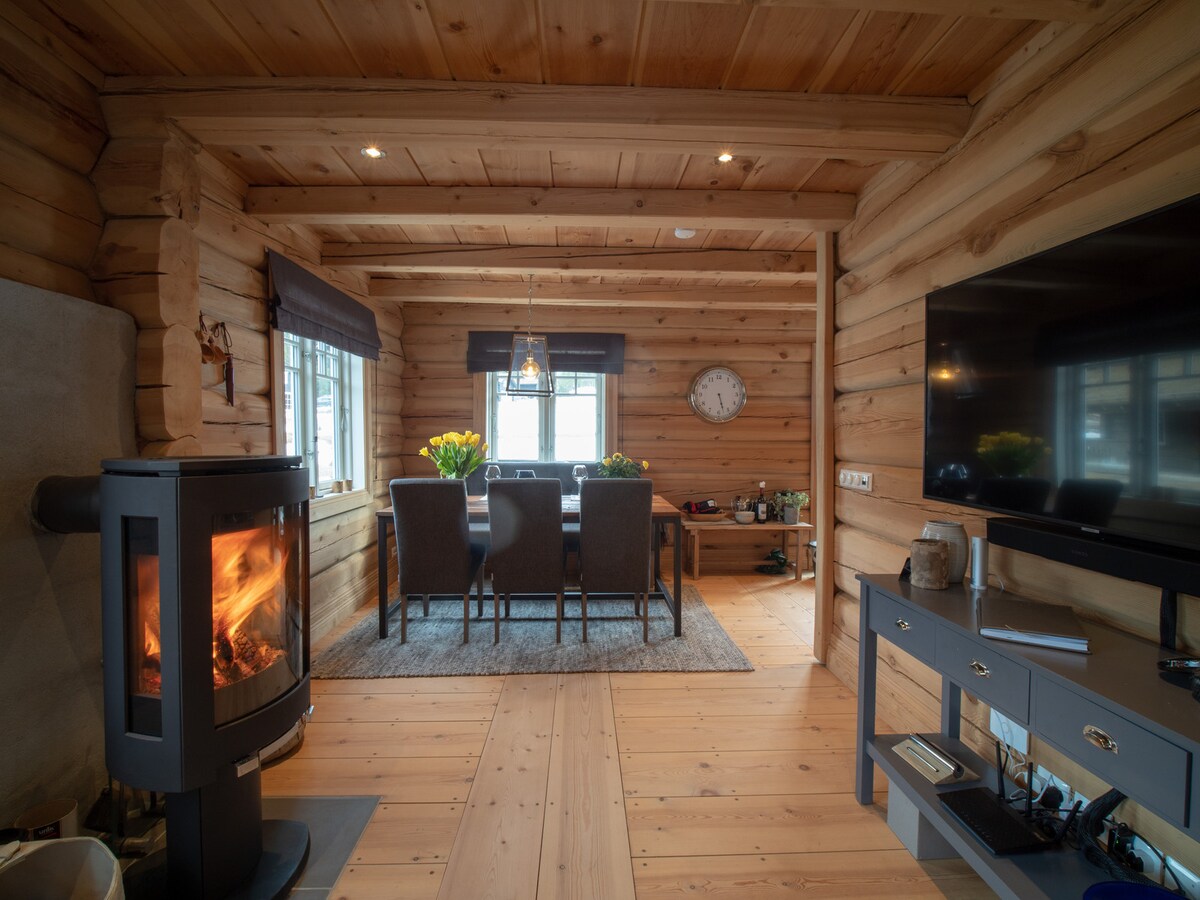 Hyggelig, håndlaftet tømmerhytte fra 2019, høy standard, med boblebad og alle fasiliteter. Parkering for flere biler og el-billader (type 2). Gang, bad/wc, stue med peisovn og kjøkken, 3 soverom. Bod/vaskerom, vaskemaskin og tørketrommel og wc. TV med Apple-TV/ Internett 100/100 via fiber/WiFi. Stor terrasse med hyggelig spiseplass til 10 personer, Weber kullgrill og boblebad. I tillegg er det en overbygget spiseplass med terrassevarmer ved inngangspartiet.