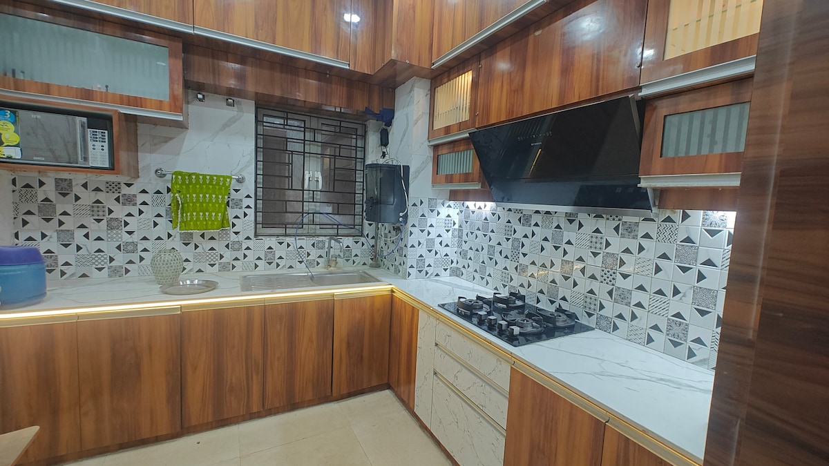 Hyggelig parvennlig toppleilighet i nærheten av Netaji Metro Bo i denne romslige, godt opplyste toppleiligheten i tredje etasje i Annapurna Residency, bare fire minutters gange fra Netaji Metro, markedet og transportknutepunktene. Perfekt for arbeid eller avslapning, den har en 6x4 ft projektor, arbeidsplasser, benmassasje, kroppsmassasje, fotspa og treningsutstyr som en yogamatte, vekter og pull-up bar. Et rolig tilfluktssted med alle moderne bekvemmeligheter.
