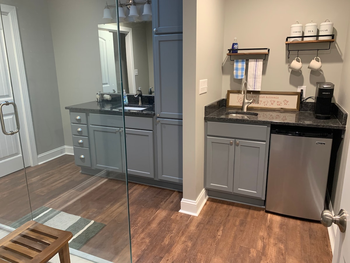 Bo på en fiber-/lavendelgård som ligger praktisk til i Raleigh/Durham-området – 20 minutter fra Interstate 85 og 50 minutter fra 95. Samhandle med alpakkaene, sauene, lamaene, angorageitene, eslene våre og mer. Kjøp i gårdsbutikken vår, spasér på eiendommen. Omvisninger er gratis for registrerte gjester. Venner kan bli med på omvisningen mot betaling. Bruk av bassenget er kun for registrerte gjester. 20 trapper fører opp til leiligheten på 65 kvm over garasjen med egen inngang. Inkluderer en kingsize-seng og en sovesofa.