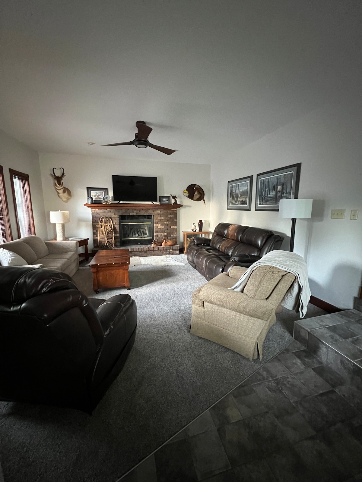 Dette stilige landet ligger i nærheten av den fortryllende motorveien, som har skulpturer på 70 til 80 fot langs veien. Når du tar avkjørselen I-94 Gladstone, ser du den 80' høye skulpturen «Birds in Flight». På slutten er du på det fortryllede slottet. Vi ligger 40 miles fra Medora & Roosevelt National Park, en destinasjon du ikke må gå glipp av. Du har egen inngang og terrasse. En grillbar med pizzaovn på øvre dekk. Utendørs bålplass og (3) kajakker som du kan bruke på Heart River nedenfor.