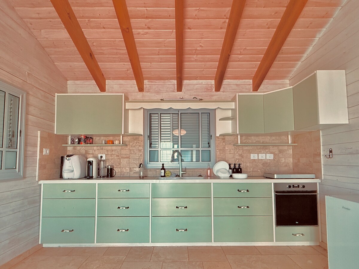 I hjertet av Galilea venter den bortskjemte feriedrømmen bare deg. Et nytt hjem, designet og for det meste bortskjemthet, vil gi deg den perfekte opplevelsen og kombinasjonen av et sentralt område i Galilea, tilgjengelig for turer, og tilbake til et bortskjemt hjem utstyrt med alt du trenger og utover. Et fullt utstyrt utekjøkken i Tavon er perfekt for pizzaer og grillgrill, et romslig boblebad med utsikt over den perfekte utsikten over Galilea, en stor trampoline, barnespill, hjemmekino med perifert lydanlegg, basseng (sommerdager), en ladeposisjon for elbil, et stort kosherkjøkken og fullt utstyrt, og alt er smakfullt innredet og komfortabelt innredet. Hva venter du på? Nyt ferien din!