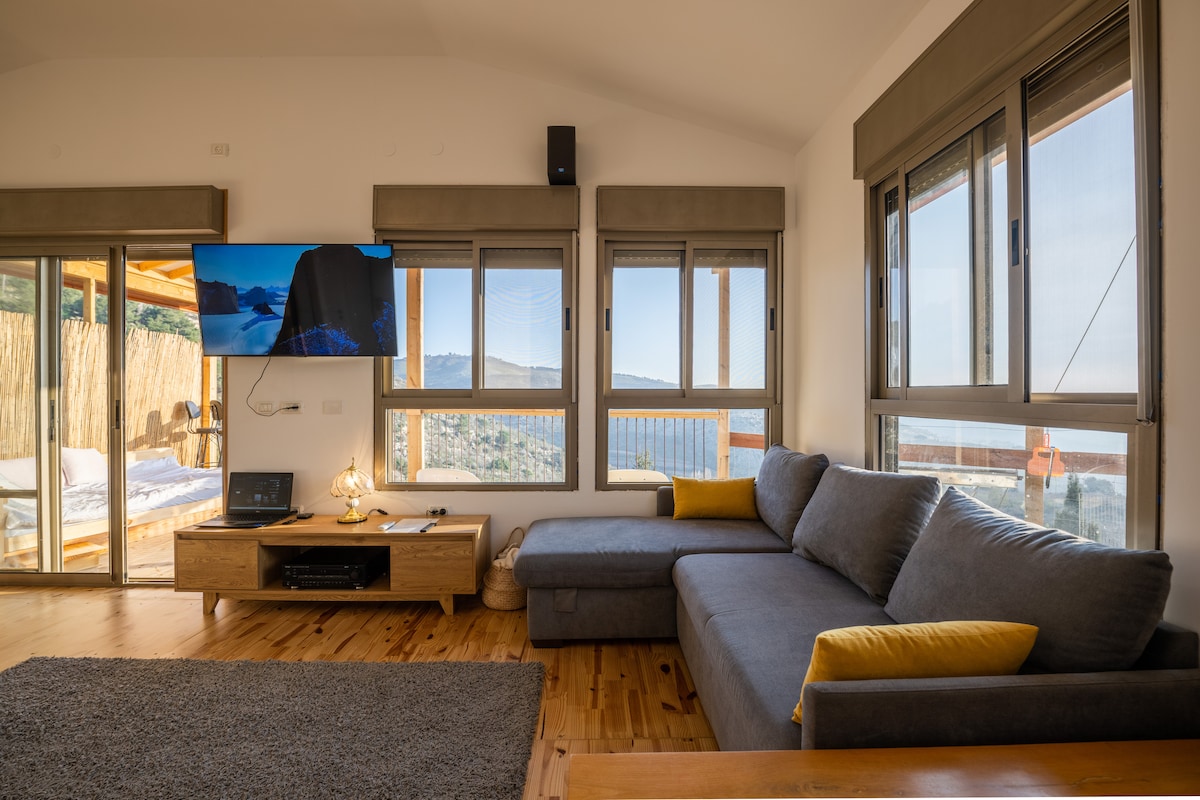 Sparrow - En sjarmerende tre-roms, rolig og velutstyrt leilighet i andre etasje. Leiligheten er ment for folk som ser etter fred, ro og ro og er ikke ment for fester og høy musikk. På sørsiden er det et område av bassenget og jacuzzi nær naturen med fullstendig privatliv. Bassenget er oppvarmet, og jacuzzien er oppvarmet og designet for seks personer. På nordsiden er det en stor balkong for en fantastisk panoramautsikt over Jezreel-dalen.