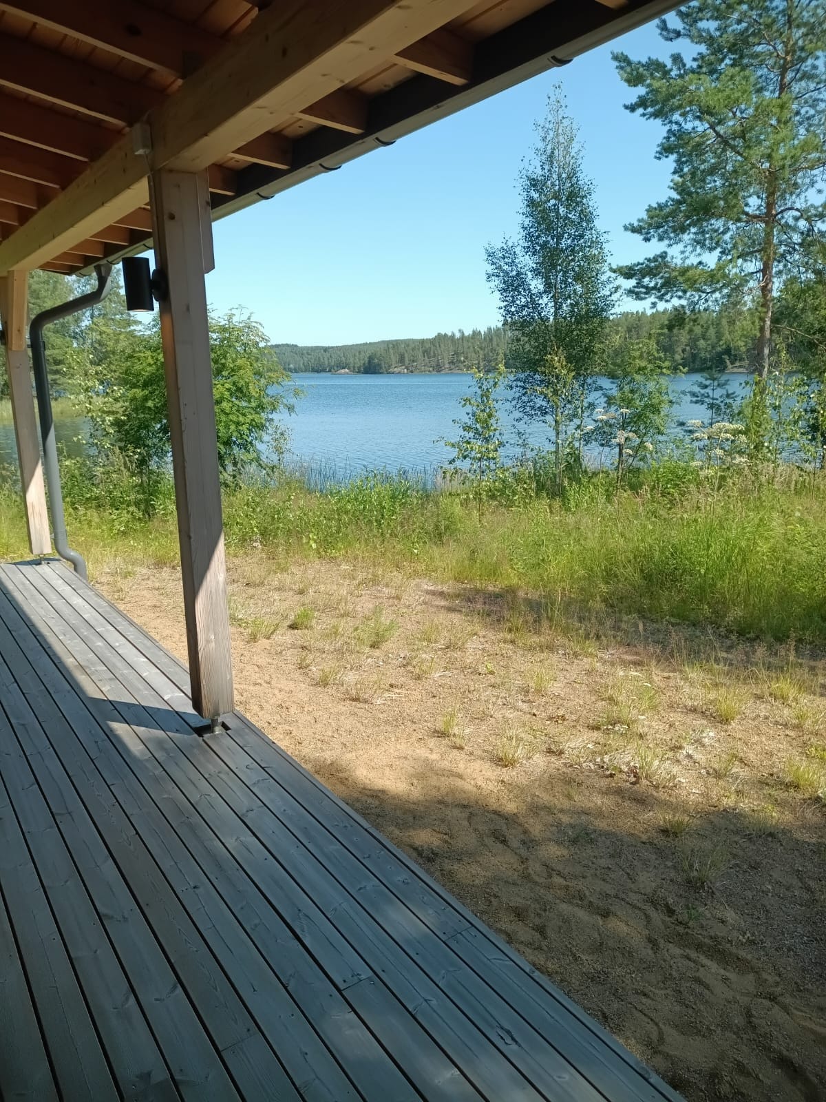 Stor hytte ved innsjøbredden. Kermajärvi