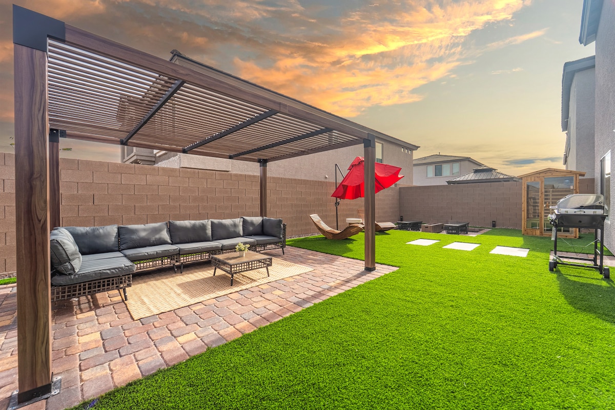 Ettasjet hus med privat frodig bakgård og avslappende basseng/spa. Gratis parkering, kjæledyr er velkomne. Hvis du bestiller samme dag, kan det være nødvendig med tre timer for å gjøre huset klart og gi deg den digitale nøkkellåskoden for inngang. En avtale om basseng/spa, uten hold-hamless, forutsettes når huset er bestilt. Nevada skattetillatelse, skattebetaler-1042358966-001 Nevada organisasjonsnummer: NV20201966800. North Las Vegas, lisensnummer: BUS-000020-2021.