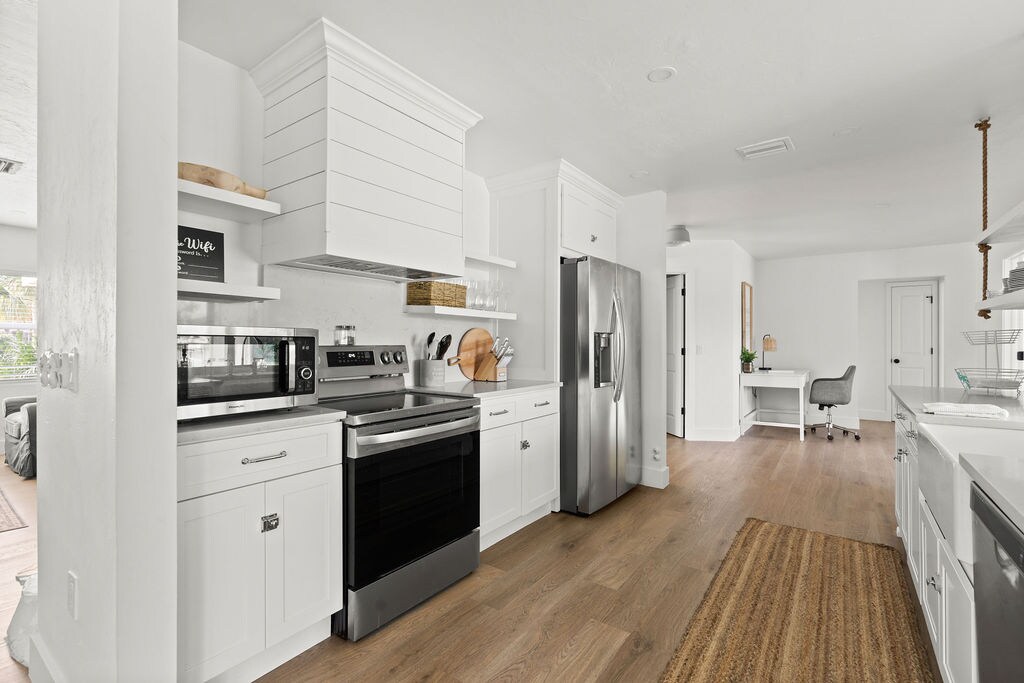Et renovert moderne hus fra midten av århundret med naturlig fredelig utsikt fra hvert vindu og skyvevindu. Ingen detaljer ble spart, da det skulle bli vårt evige hjem. Ligger ved en kanal med tilgang til havet, ekstremt trygt, sjarmerende og vennlig nabolag, rett ved 41. I bakgården er det et stort, skyggefullt sitteområde med gassgrill og bålpanne. Bryggen henger over vannet med sitteplasser og svømmestige. To tandemkajakker, fiskestenger og utstyr, sykler for voksne og barn, strandstoler og mye mer.