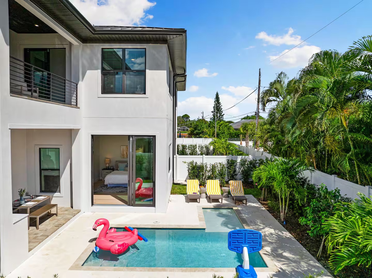 NEW+Modern.Heated Pool.Minutes to beach.Sleeps 10+
