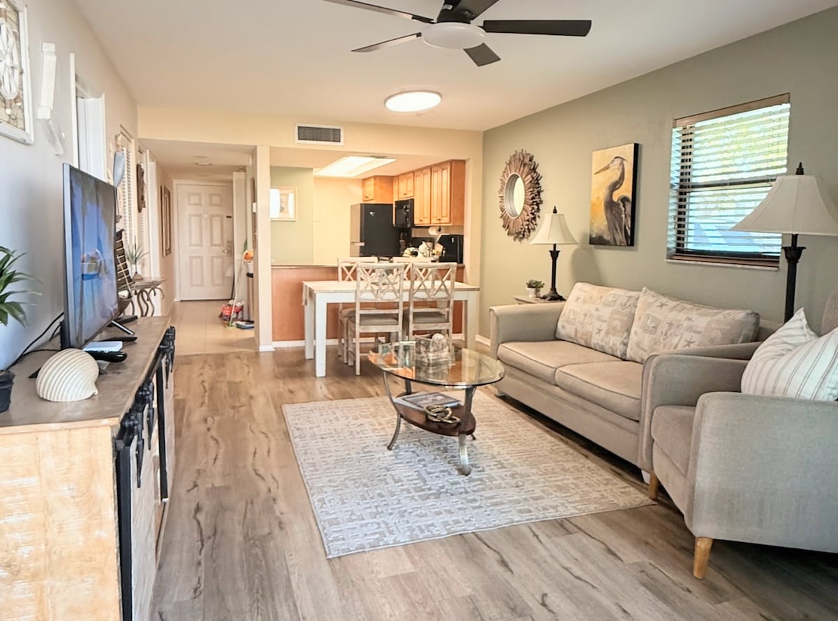 Enten du ser etter en familieorientert eller rolig, romantisk ferie, har vi det du trenger! Enheten vår ligger bortgjemt i sørenden av komplekset vårt, hvor dryppet av fossen utenfor verandaen din er den perfekte bakgrunnen for å nyte morgenkaffen eller kanskje en feriecocktail! Enheten vår er fullstendig ombygd i en oppdatert kyst-chinoiserie-stil som er en kombinasjon av klassisk og moderne, men også beboelig (vi har to små barn). Perfekt bakteppe til tiden din i SW FL!