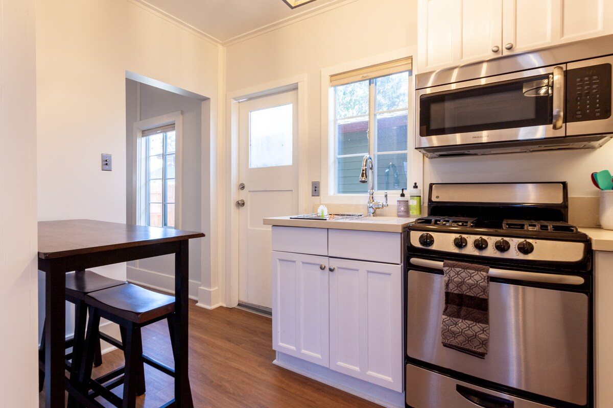 Nyt en fantastisk utsikt over Mission Valley i dette bedårende hjemmet med ett soverom/bad, som nylig er ombygd og ligger bare to kvartaler fra utmerkede spisesteder og natteliv. * Kjøkken i full størrelse, vaskemaskin/tørketrommel. * Sterkt trådløst nettverk, TV-er og SonoS-lydsystem. * Ny seng og alltid hvitt sengetøy. * Enkel inn/ut med garasjeparkering inkludert. * Trygt og privat (ingen overvåkning på eiendommen). * Rask elbillader (ingen gebyr). Denne eiendommen har også strålende helbredende energi. Ta en titt på anmeldelsene våre for å få tillit til bestillingen.