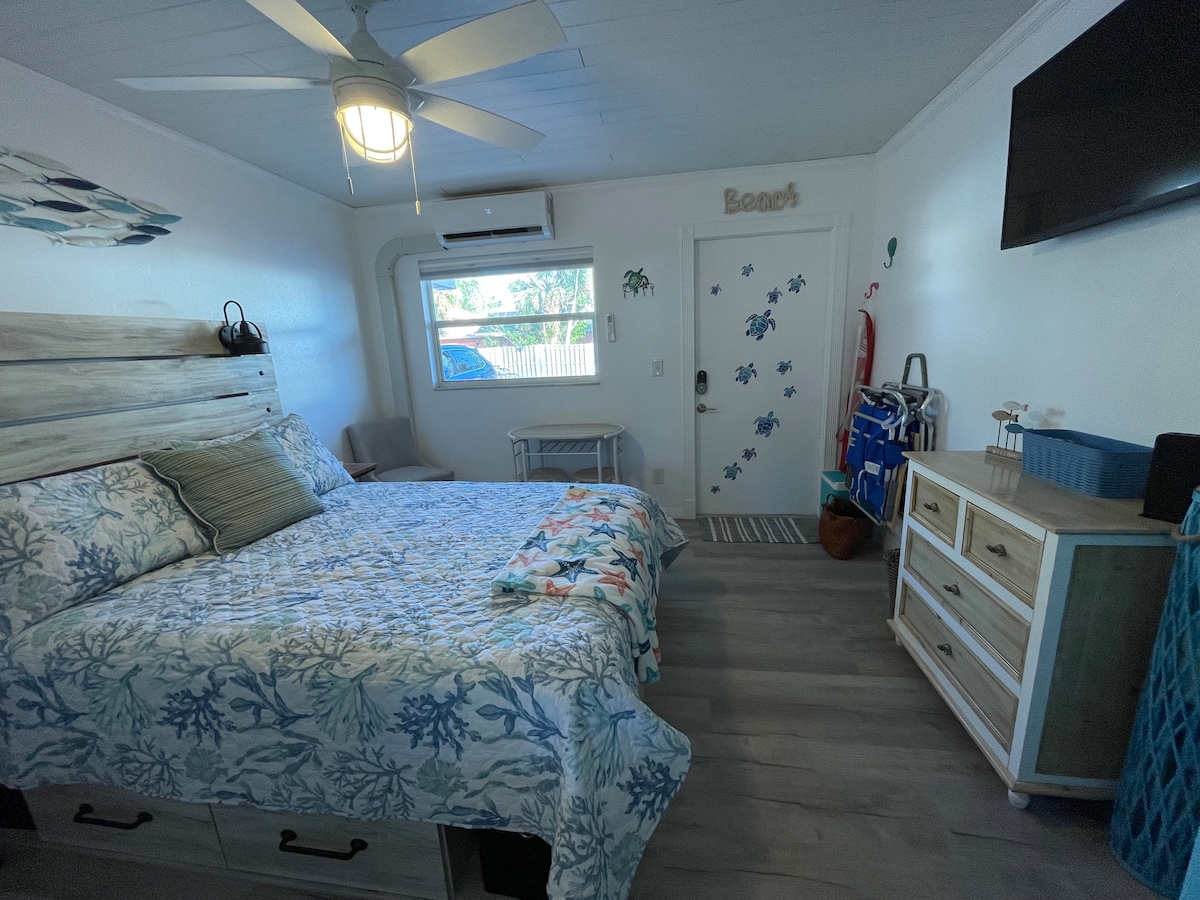 Denne koselige leiligheten har et fullt utstyrt kjøkken, spiseplass, stue, et hovedsoverom med kingsize-seng og et lite andre soverom. Kystinnredningen og møblene skaper atmosfæren i et øyhjem. Leiligheten vender ut mot en bred veranda med vakker utsikt over Mexicogolfen. Gå ned sandstien til en privat strand og det turkise vannet i bukten. Nyt Gulf-bris og solnedganger fra verandaen eller stranden.