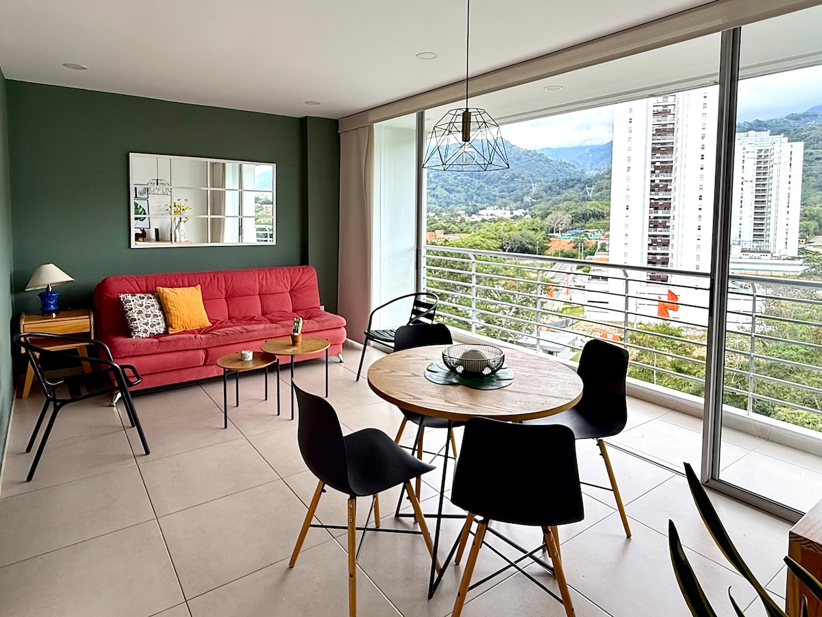 Leiligheten min er designet for å få deg til å føle deg hjemme. Den har et fullt utstyrt luksuskjøkken, 2 soverom, aircondition i hovedsoverommet, 2 bad. Den ligger bare 5 minutter fra flyplassen og 3 minutter fra Unicentro kjøpesenter, i en helt ny 4-etasjes bygning. Vi venter på deg. Kjæledyr er ikke tillatt.