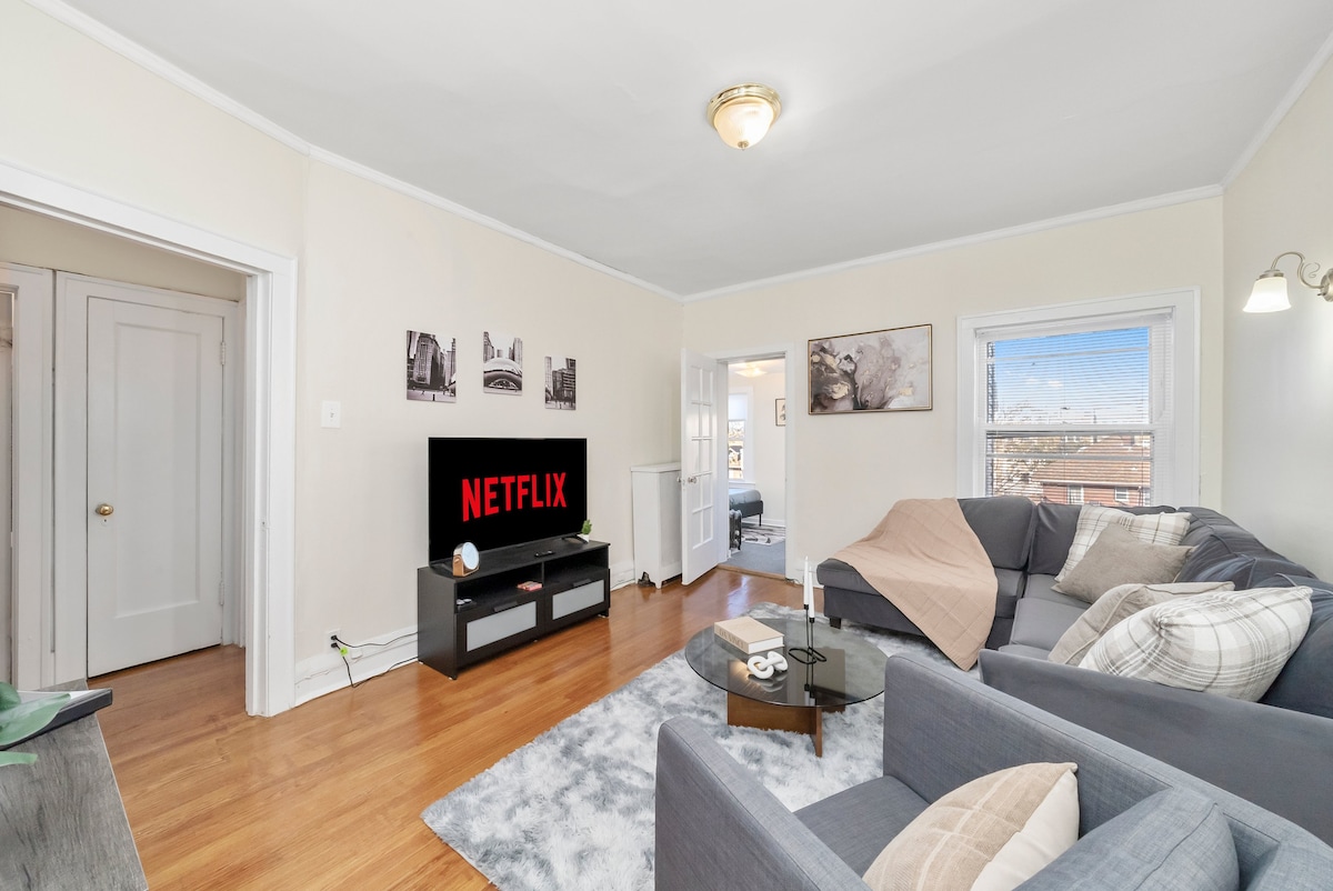 Enjoy this light-filled, roomy 3BR/2BA condo featuring an open, airy layout ideal for families, friends, or groups. Each bedroom includes a comfortable queen bed, and the master boasts a private full bathroom. Cook meals in the fully stocked kitchen, gather around the spacious island, or unwind in the living area with a 55" Sony TV. With generous space to relax and connect, this condo offers a true home-away-from-home experience in Chicago.