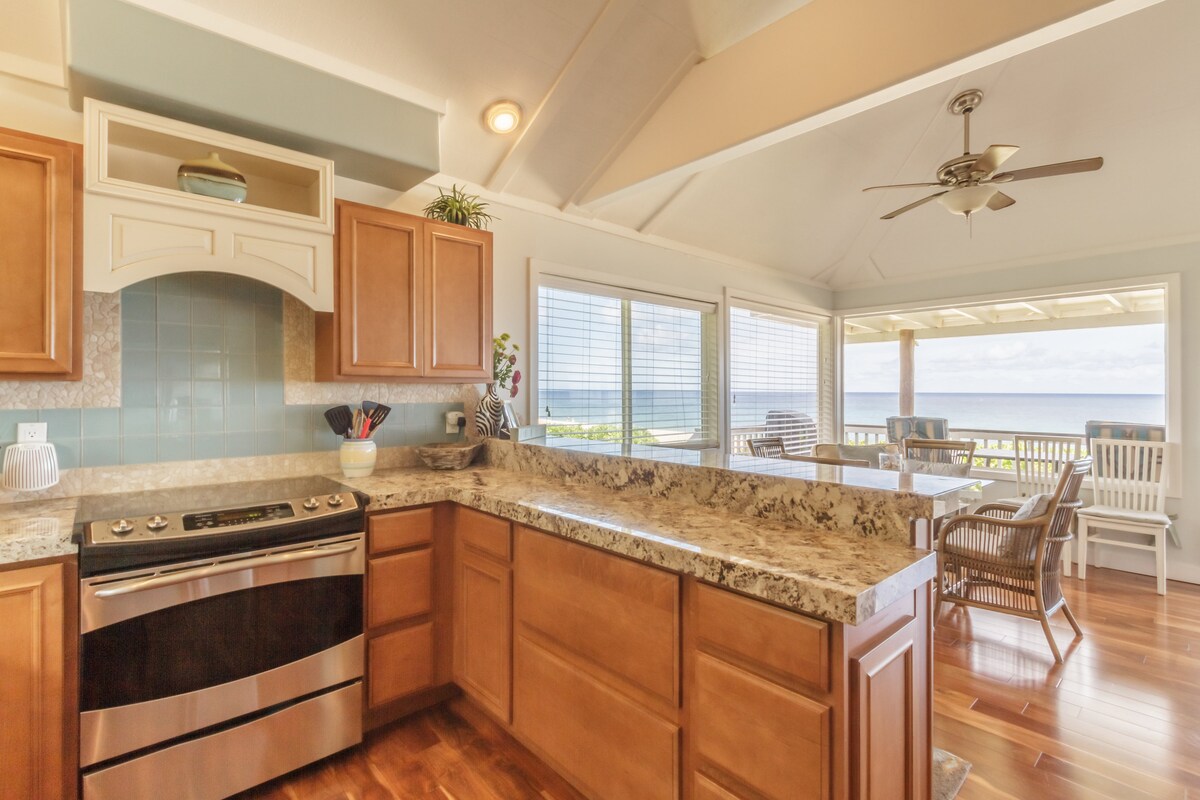 Fascinerende utsikt over solnedgangen fra denne leiligheten ved sandstranden. Ingenting skiller deg fra glitrende turkis vann, bortsett fra fotspor i sanden. Balkongen har ideell høyde for å se på skilpadder. Fra november til april kan du se en hval. Dette livlige landet er fullt av overraskelser. Selv delfiner spinner forbi nå og da. Unngå folkemengdene på Waikiki for å oppleve en ekte hawaiisk livsstil. Snorkle, boogiebrett eller surf rett utenfor døren din. Å våkne opp til havets rytme kan forandre livet ditt for alltid.