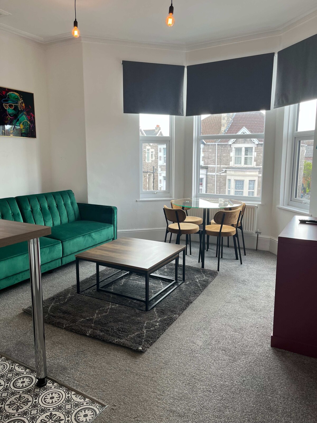 Nylig renovert, 93 kvm (1000 kvm), lys og luftig hageleilighet i et stort viktoriansk hus. Sekunder unna restaurantene, barene, butikkene og togstasjonen på Whiteladies Road. Noen minutter fra Clifton Downs og Bristol University. Gjester har felles bruk av hager. I tillegg til kingsize-sengen har vi en Z-seng pluss en reiseseng for spedbarn. Kjøkkenet har grunnleggende ting for to personer, så det er dessverre ikke ideelt for å ha venner og familie på besøk.